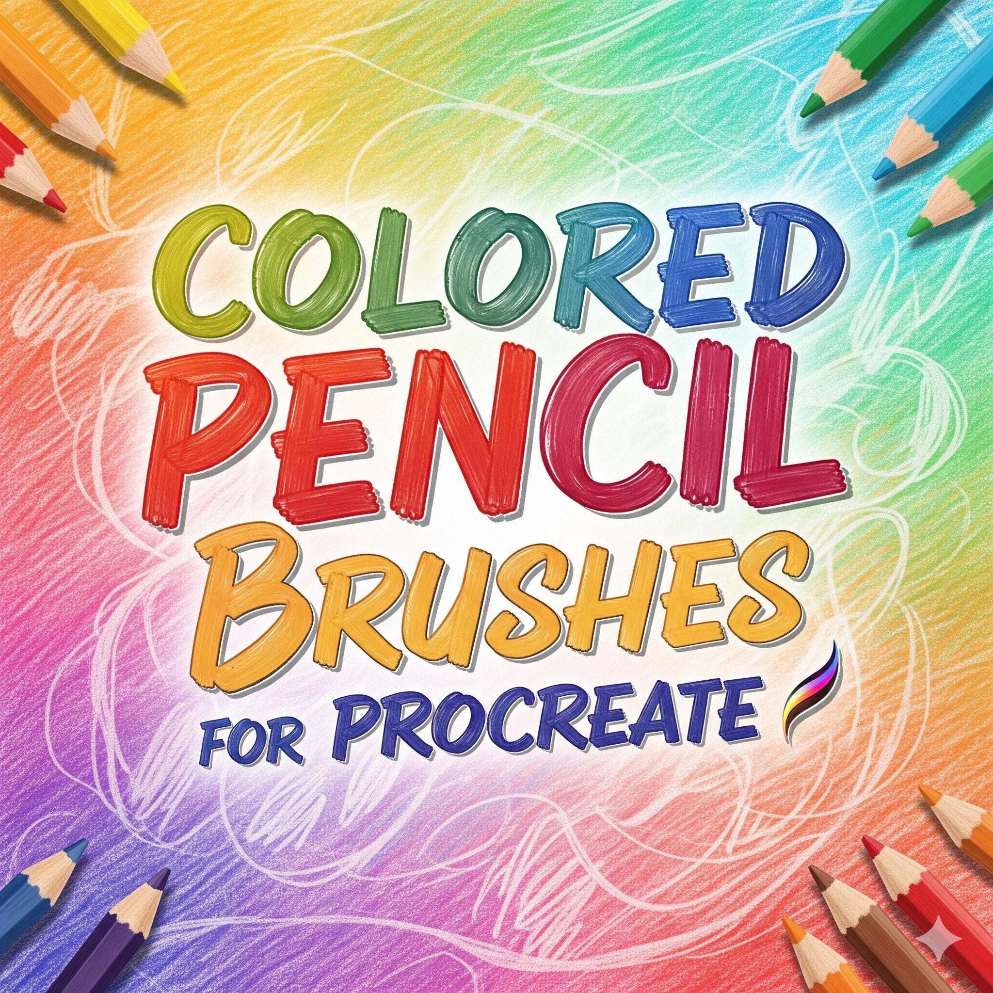 Pennelli a matita colorata per Procreate / Set di pennelli con text...