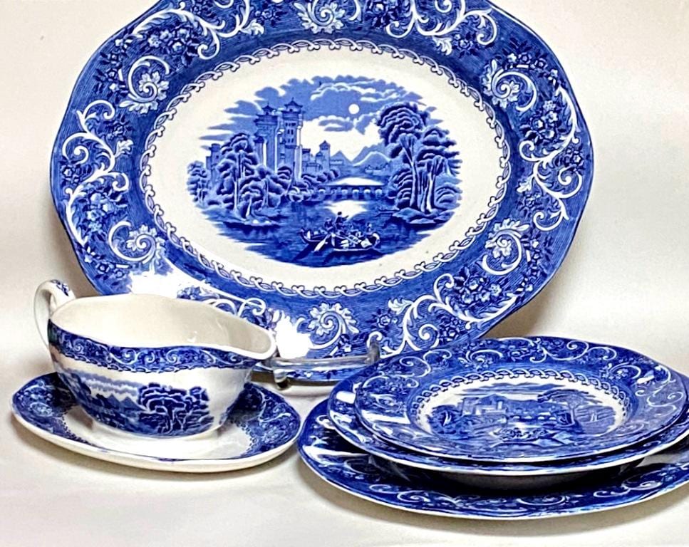 Servizio Wedgwood Tunstall blu e bianco Wedgwood River Scene River ...