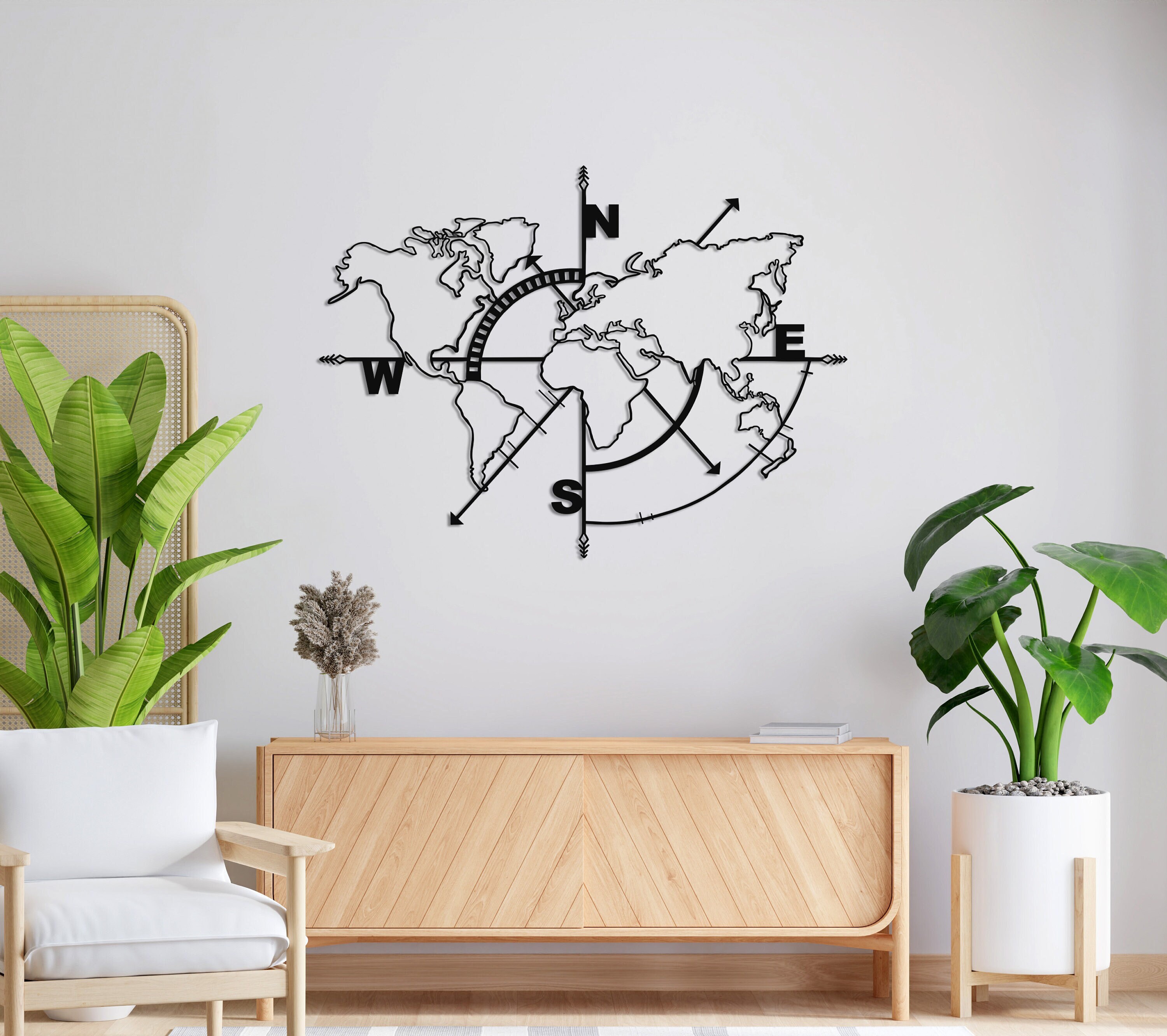 Metal World Map Decor, World Map Compass Wall Art, Metal Wall Art, ...