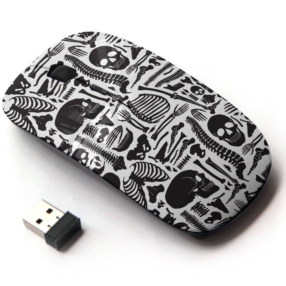 Mouse wireless con motivo monocromatico a scheletro umano, mouse ot...