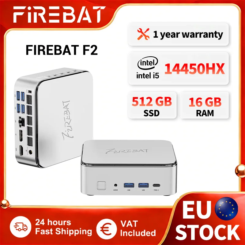 FIREBAT F2 MINI PC Intel i5-14450HX DDR4 16GB RAM 512GB SSD WIFI6 B...