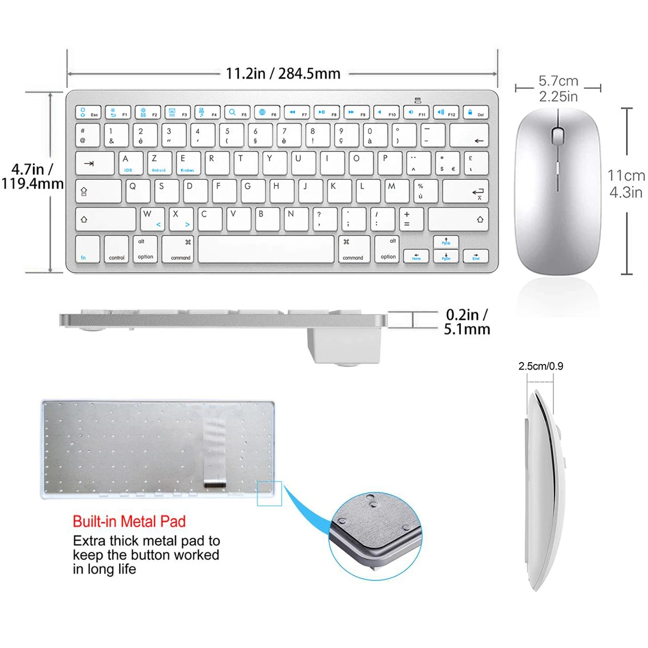 Tastiera Bluetooth francese Mouse combinato AZERTY Mouse Bluetooth wireless Ultra sottile Muto per M...