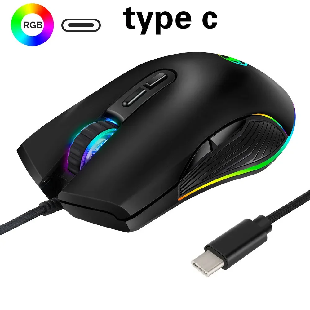 Hub di tipo C Mouse cablato Mouse da gioco ottico RGB 4 Mouse per computer retroilluminato 3200 DPI ...