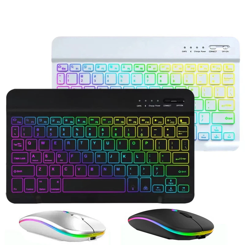 Tastiera retroilluminata RGB per tablet iPad Phone PC Android IOS Windows Tastiera wireless ricarica...