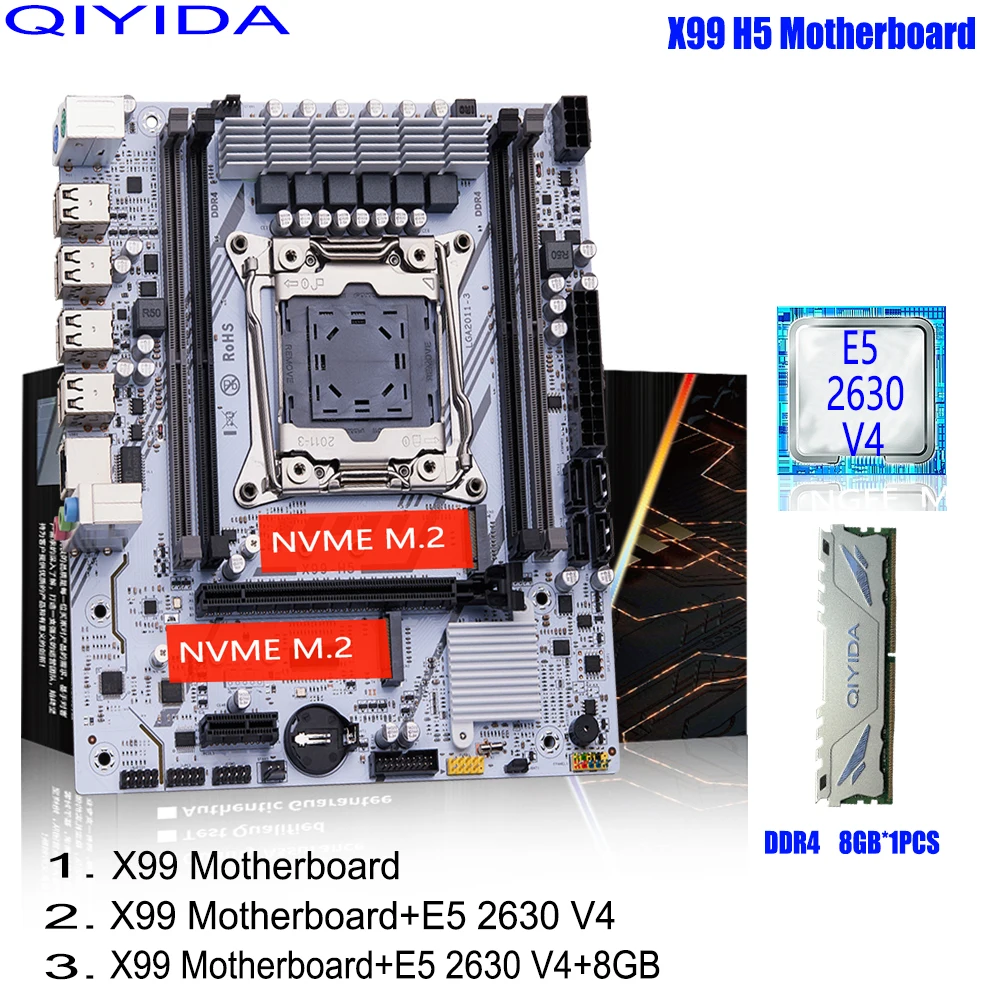 Kit Scheda Madre QIYIDA X99 con CPU Xeon E5 2630 V4 LGA2011-3, Memoria DDR4 8GB, PCI 16x, NVME M.2, ...