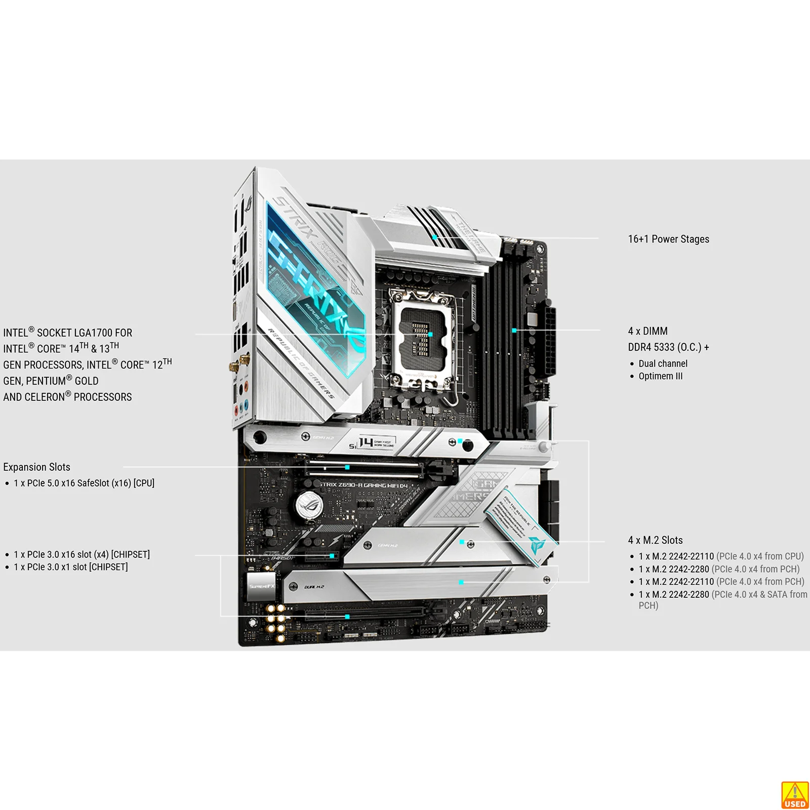 ASUS ROG STRIX Z690-A GAMING WIFI D4 Presa scheda madre LGA1700 CPU DDR4 5333 (OC) Chipset di memori...