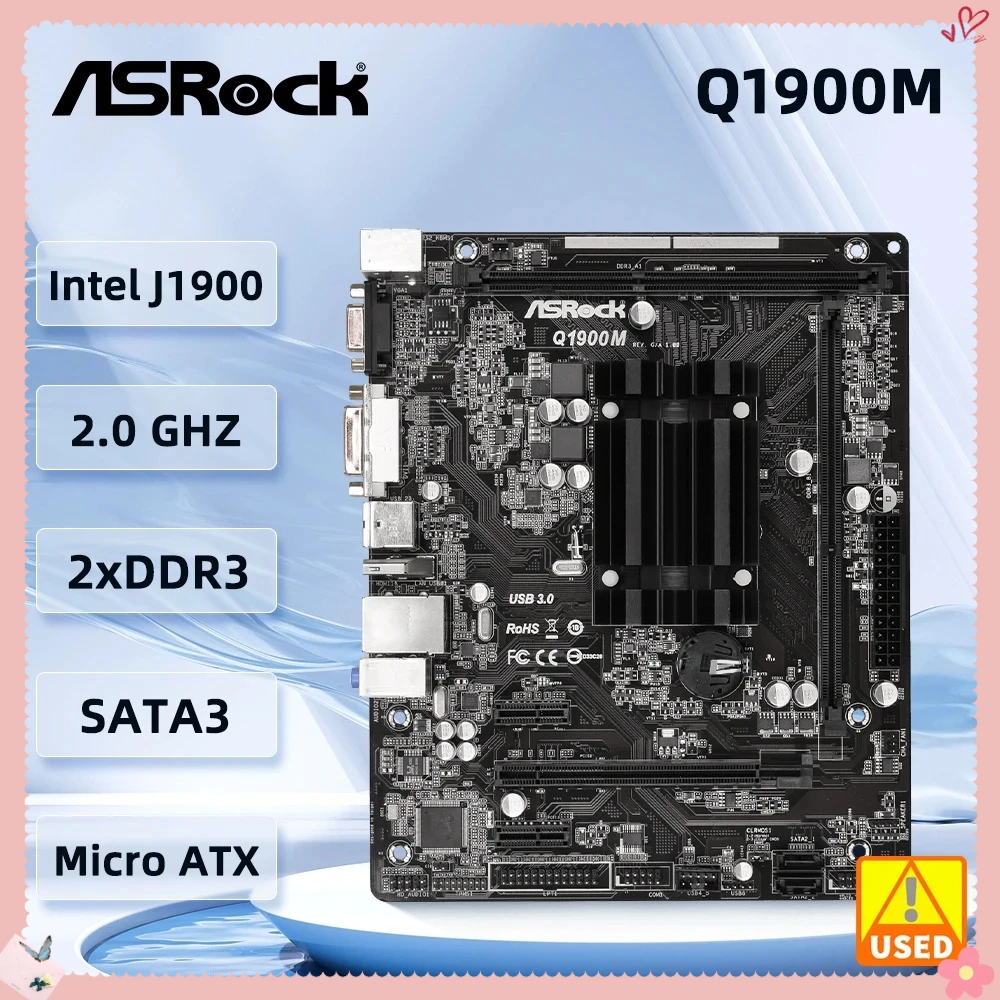 Scheda madre ASRock Q1900M Processore Intel Quad-Core J1900 DDR3L 1333 DIMM lungo 16 GB 2xSATA2 3,0 ...