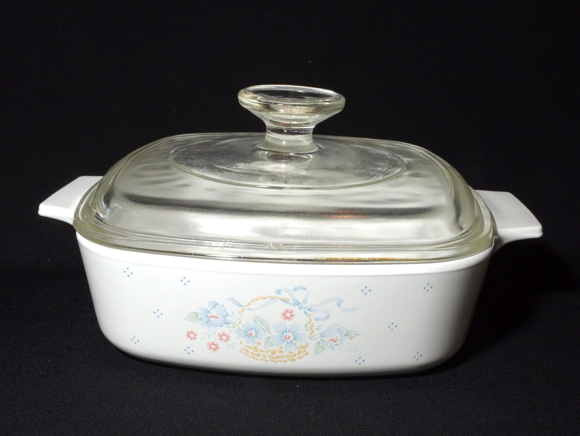 CORNING WARE Blue Ribbon Flower Basket A1B Casseruola Coperchio in vetro 1 quarto Coperchio in piroc...