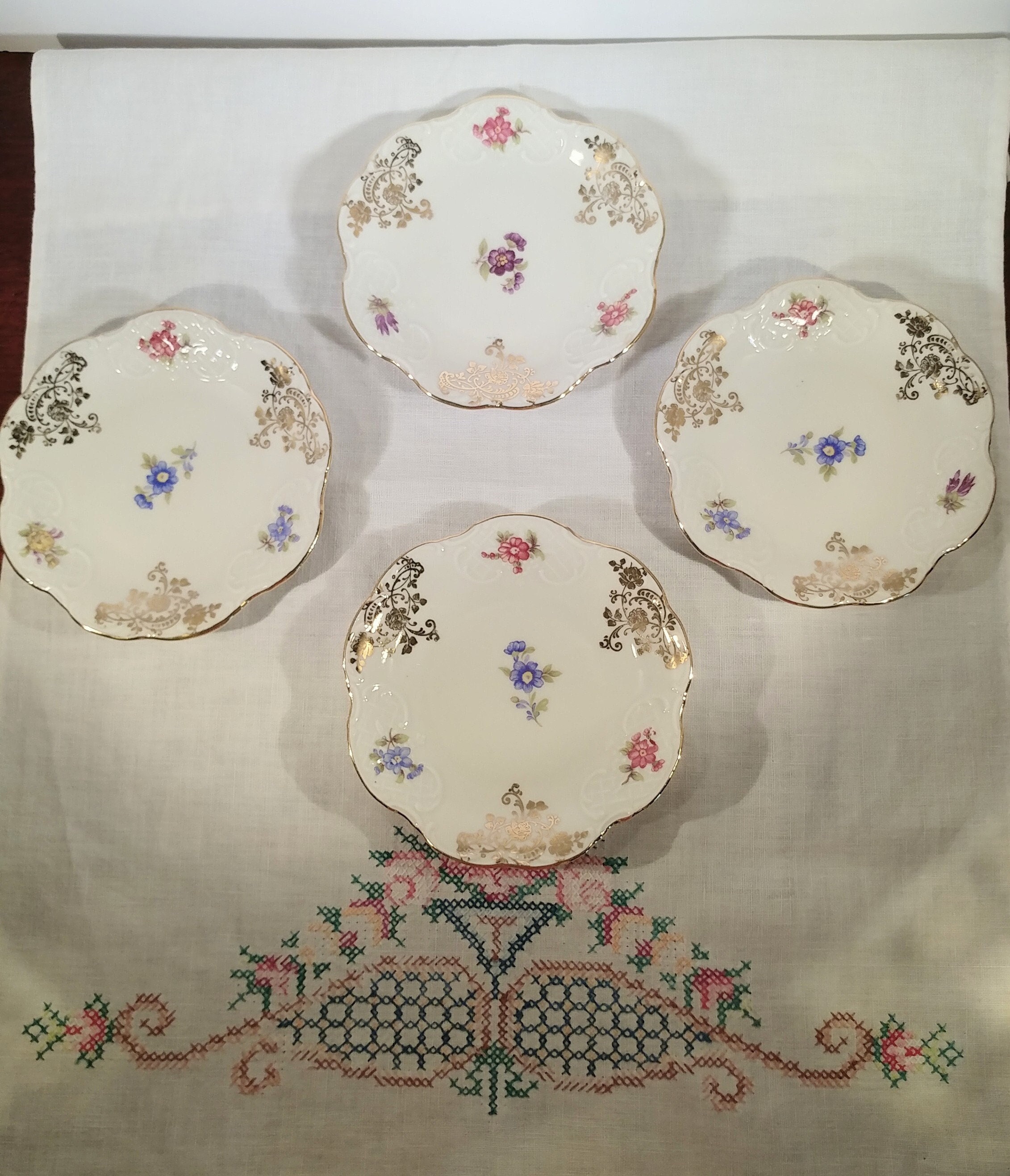 Rare Bavarian Dresden Porcelain 4 1/2 Inch Side Plates - Set di 4; ...