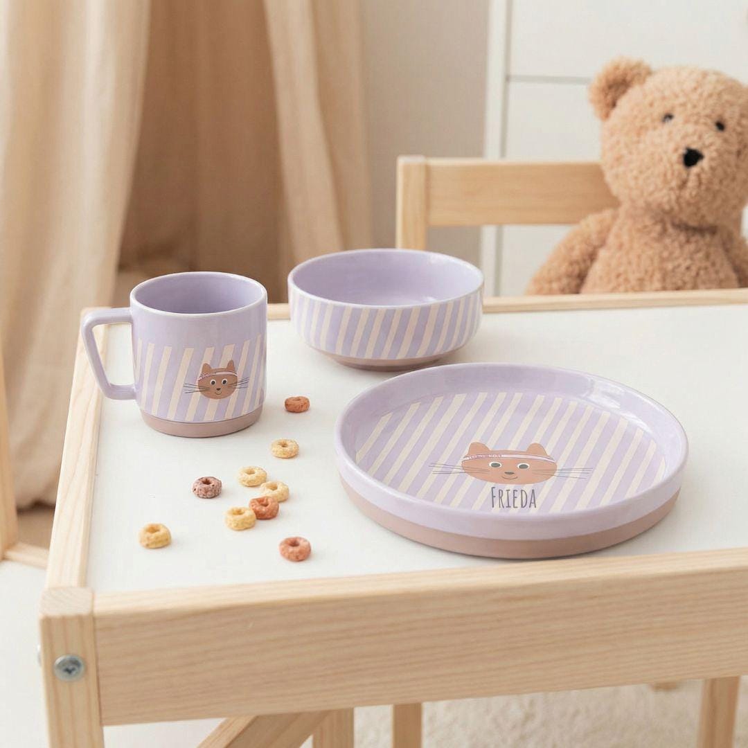 "️ Set di stoviglie in porcellana personalizzato \"Cat\" di Lässig Mangia...