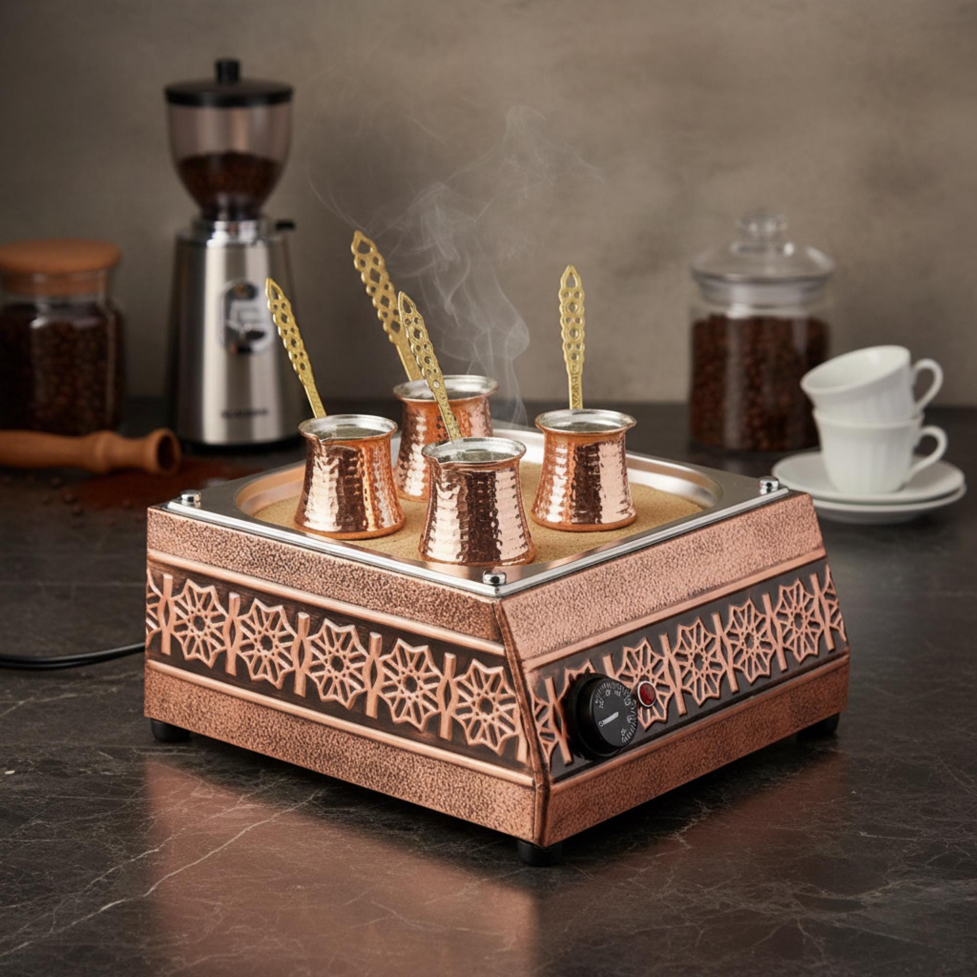Macchina per caffè turco tradizionale in rame con sabbia, macchina per caffè turco in ...