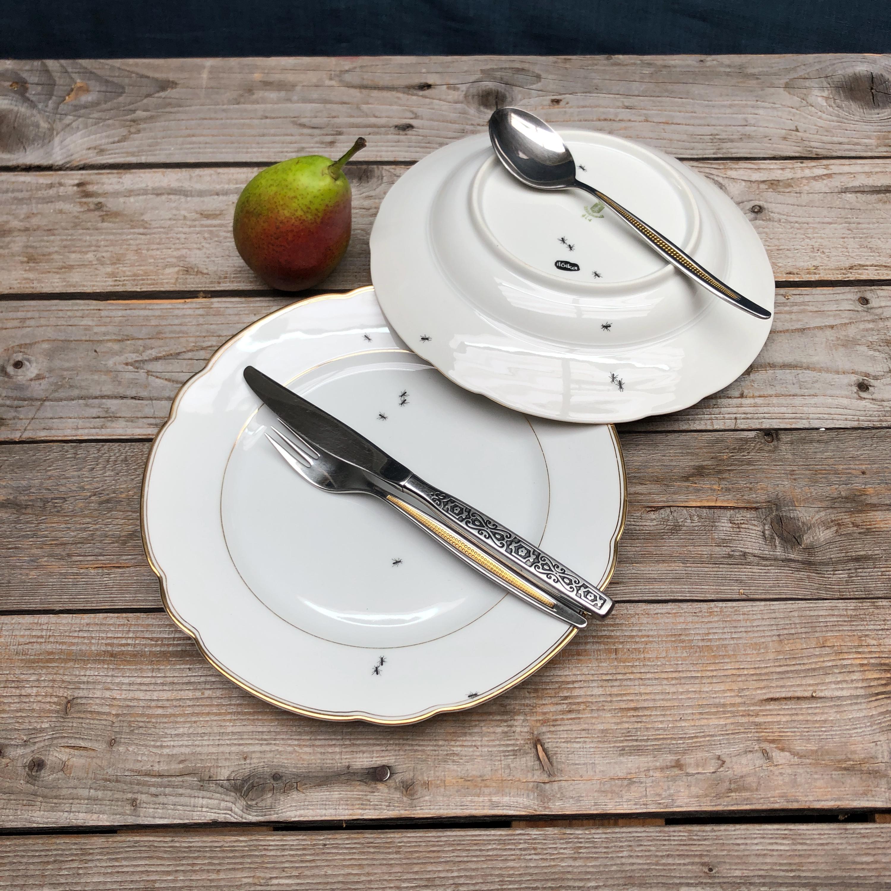 Piatto con formiche, diametro circa 24 cm, insetti stampati a mano;...