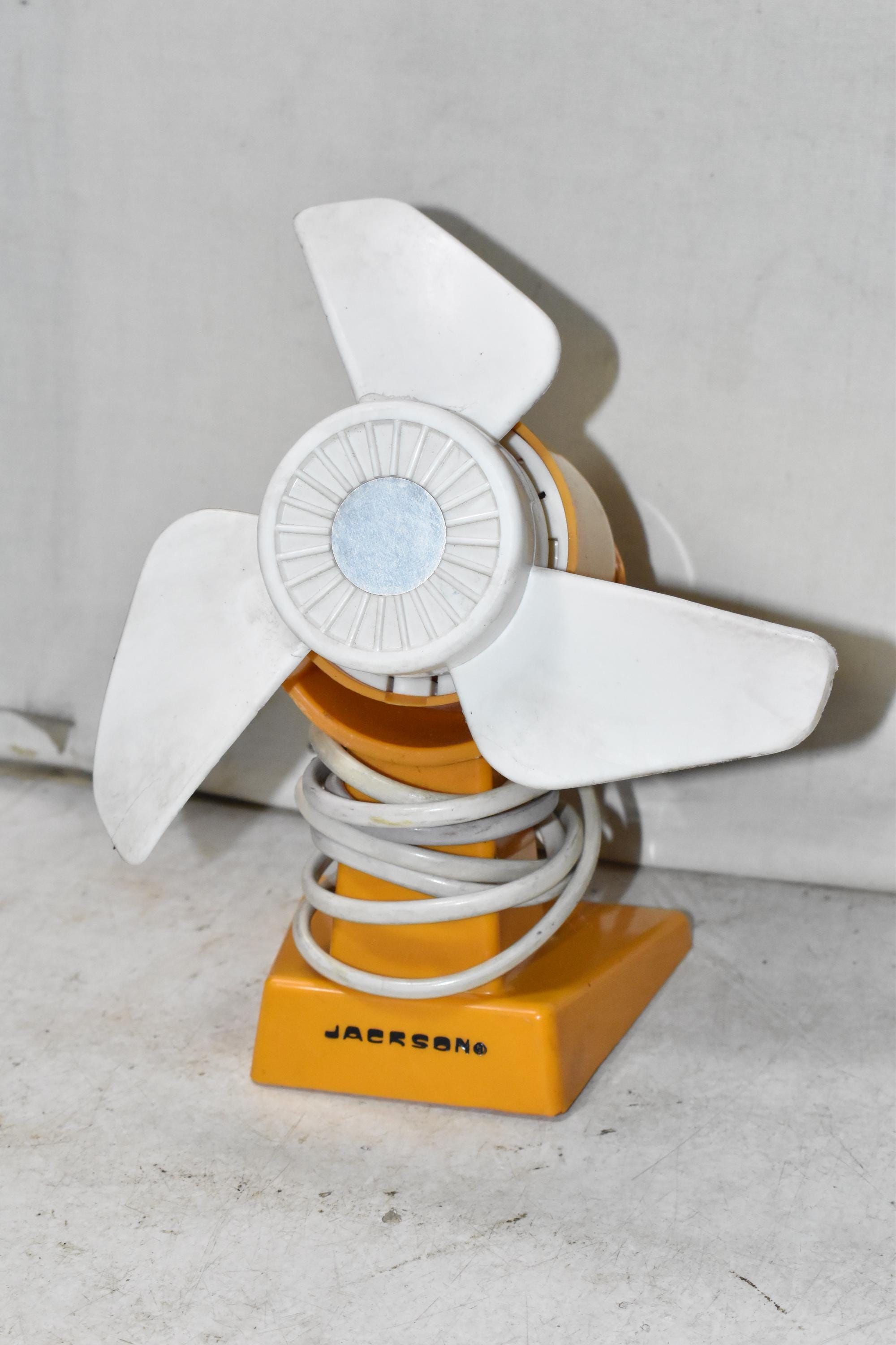 Ventilatore da scrivania vintage Jackson in plastica arancione, stile retrò, elettrico, prodo...