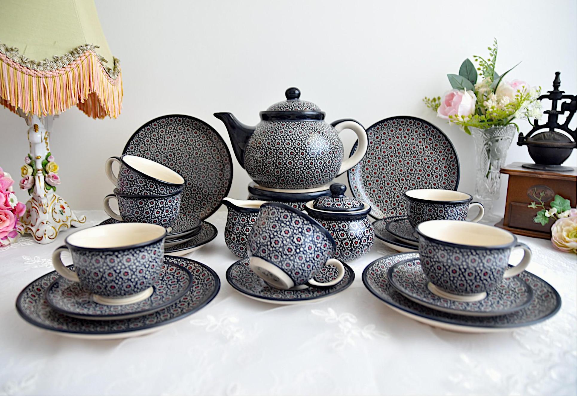 Set da tè in gres Made in Poland Boleslawiec, Set da tavola ...