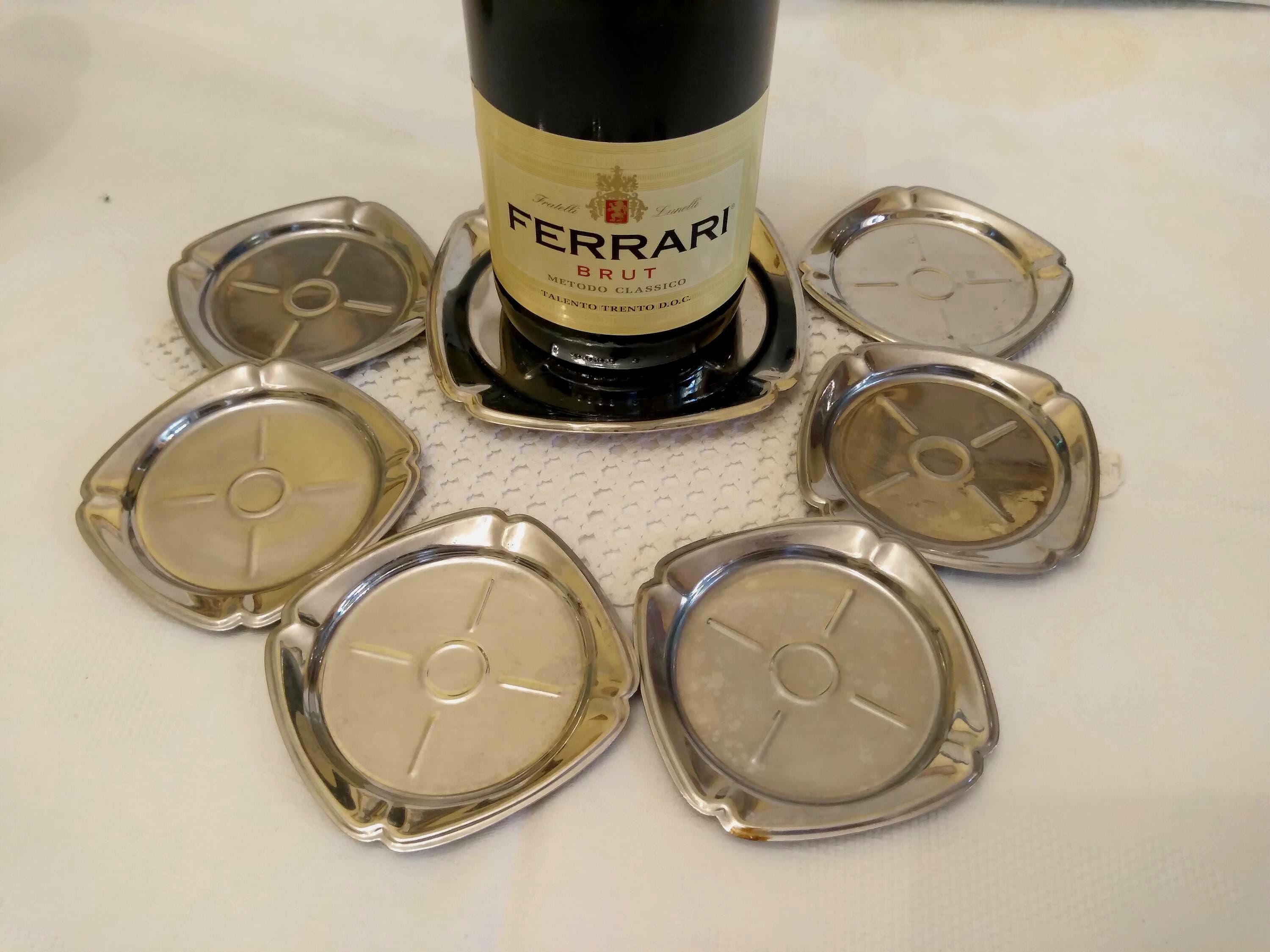 Set Piattini sotto bicchieri con Poggia bottiglia Vintage Inox Ital...