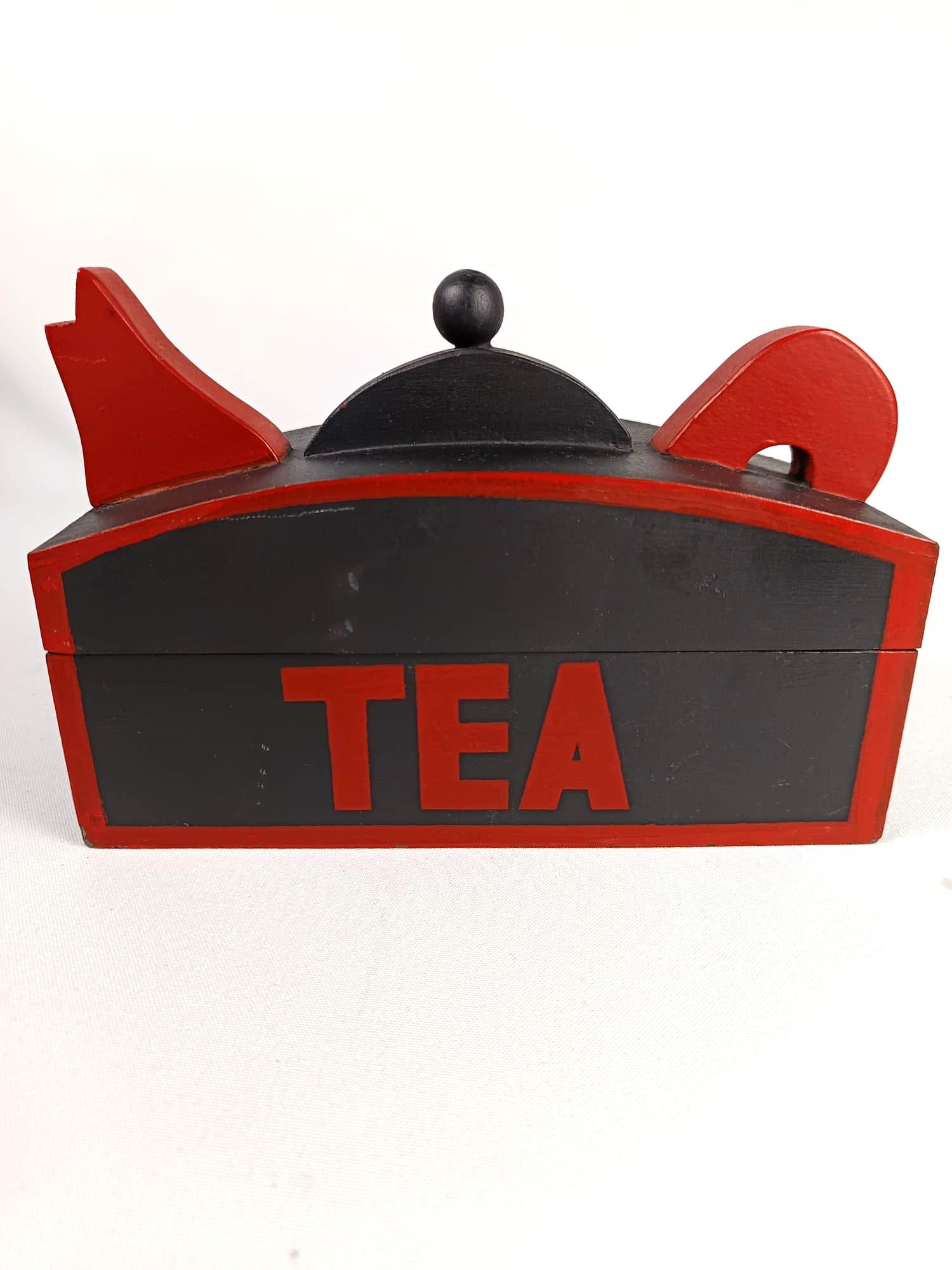 Scatola da tè in legno vintage, scatola in legno nera e ross...