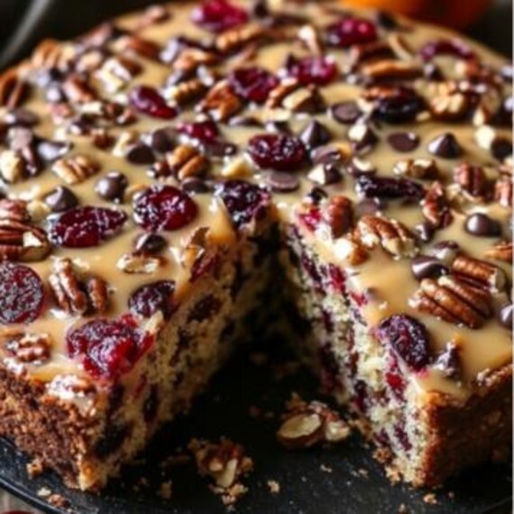 "MIGLIORE RICETTA per la torta all'arancia con mandorle, noci pecan, mirtilli rossi e gocce di ...
