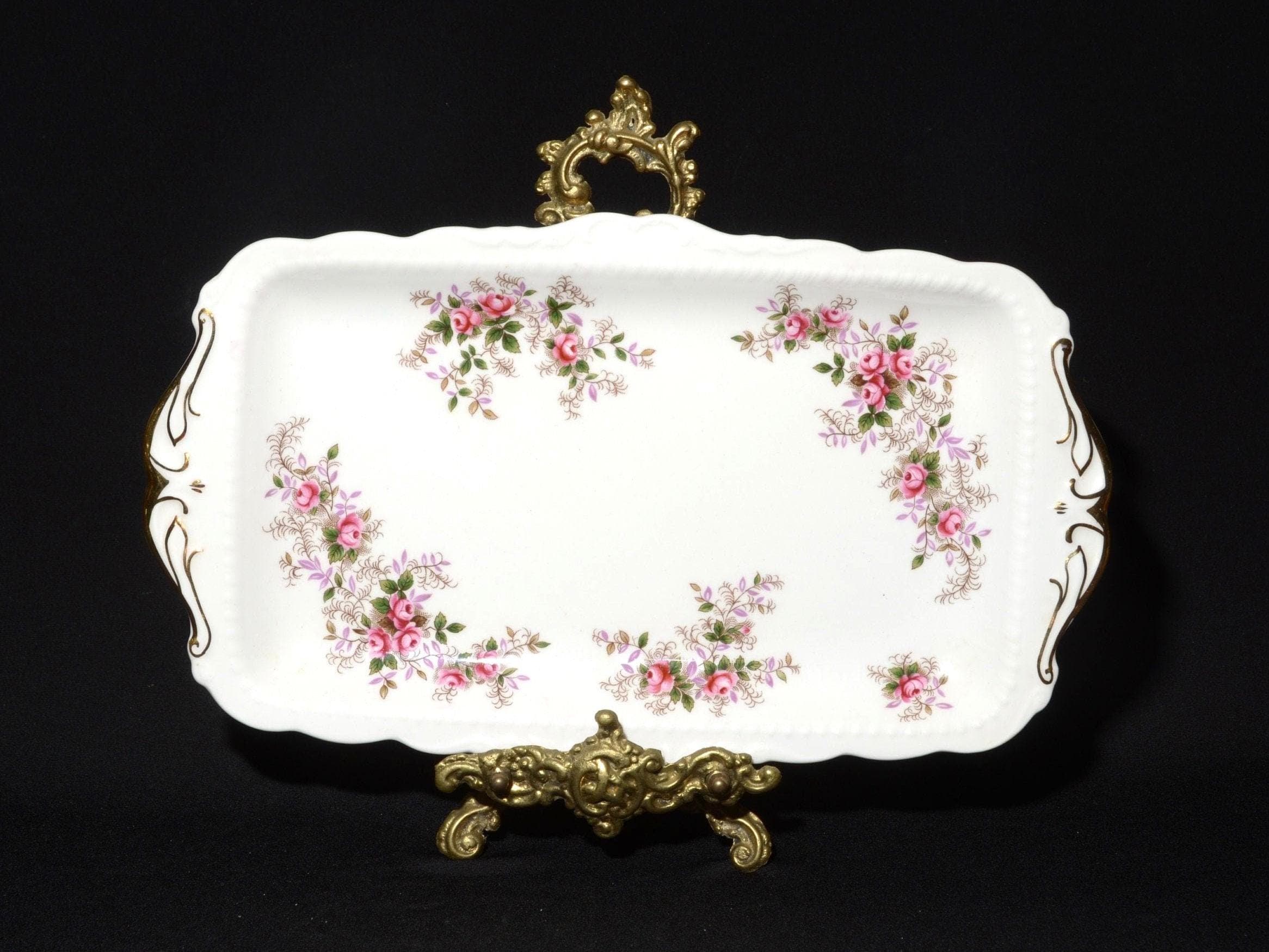 Vassoio rettangolare in porcellana Bone China Lavender Rose di Roya...