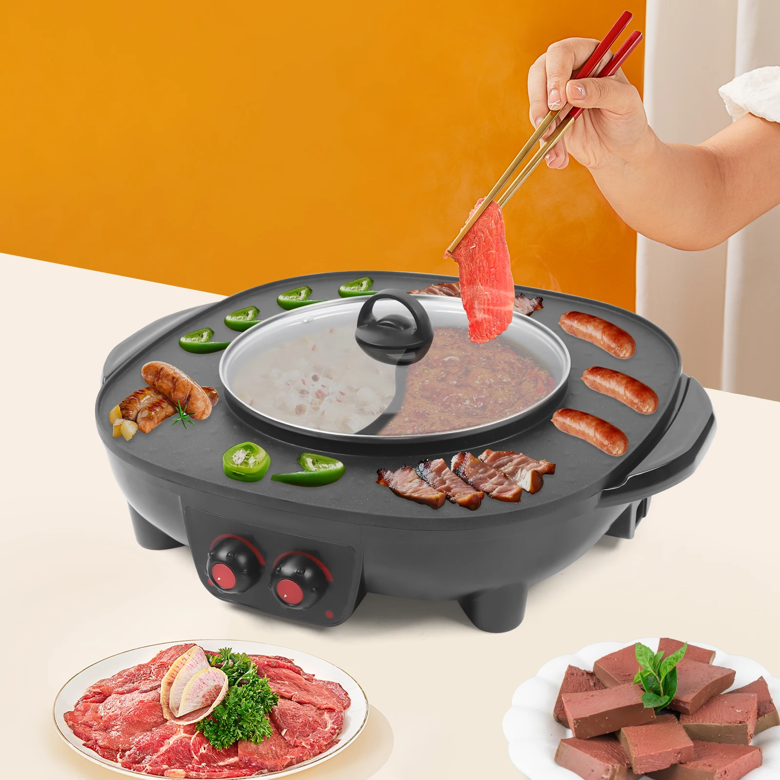 Spezzatino e grill 2 in 1, pentola elettrica per spezzatino, grill, forno antiaderente, barbecue cor...