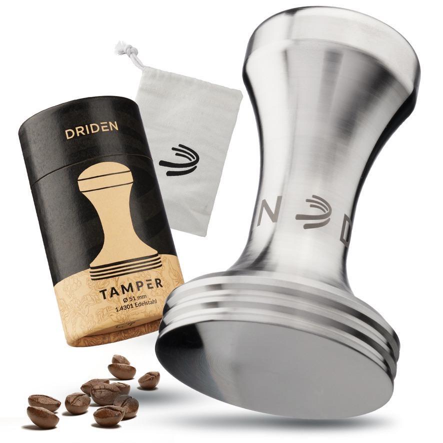 Il pressino DRIDEN da 51 mm in solido acciaio inossidabile 1.4301 garantisce una compattazione ideal...