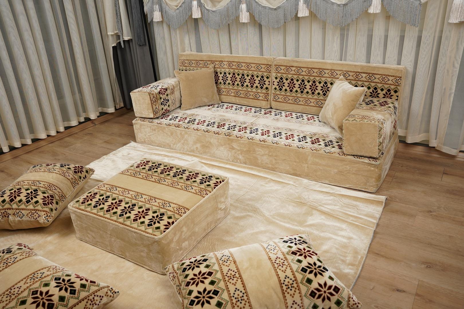 Set di sedute da pavimento in velluto arabo, divano con motivo kili...
