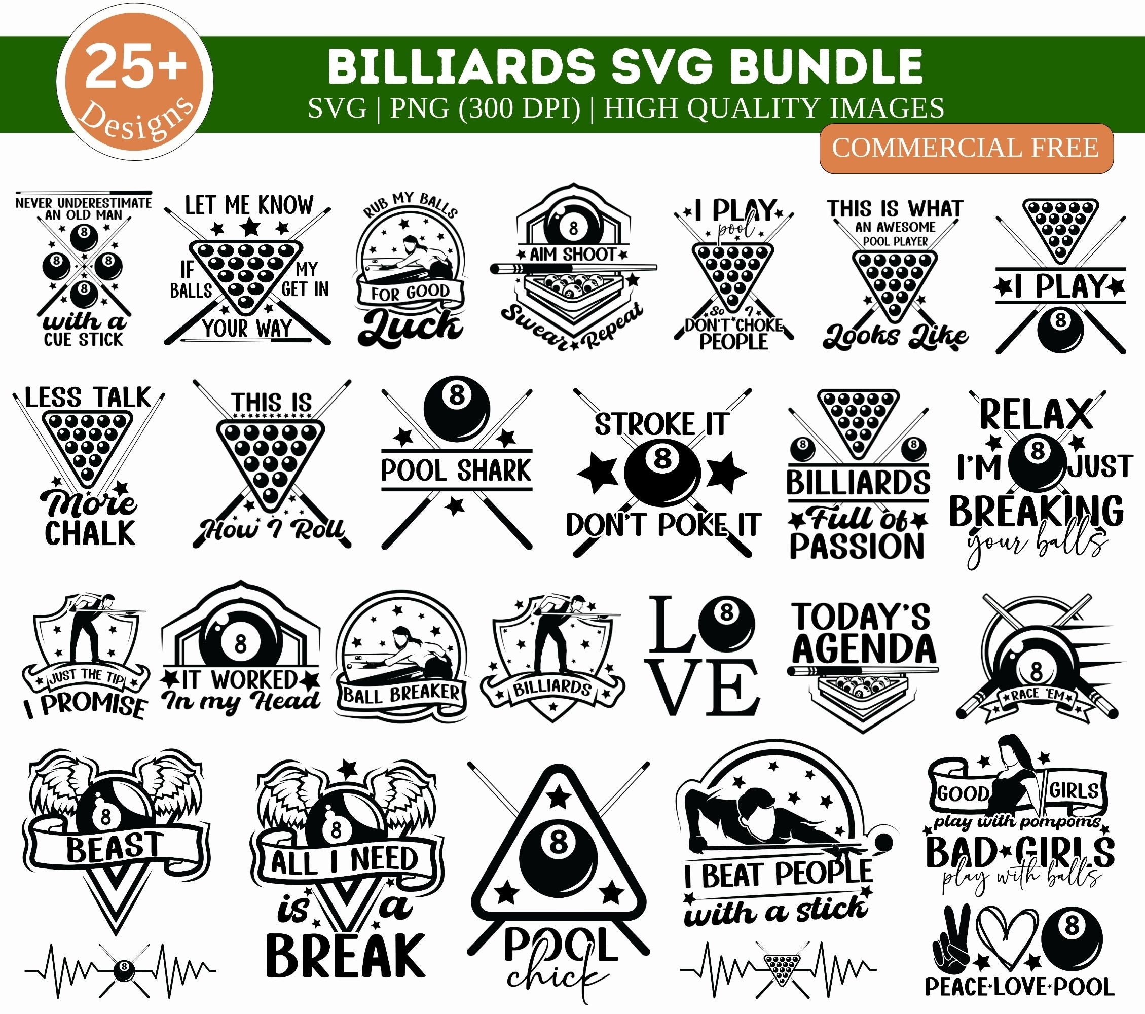 Riceverai un file con uno sfondo trasparente per il download immediato dopo il checkout. Billiards P...