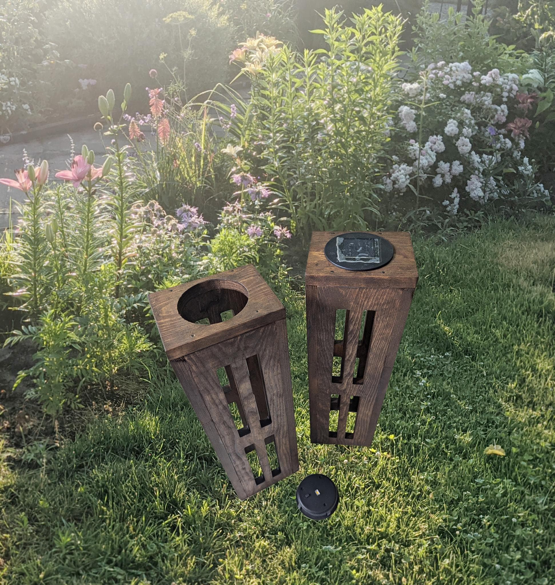 Lampada solare in legno per esterni Lampada solare per esterni Lamp...