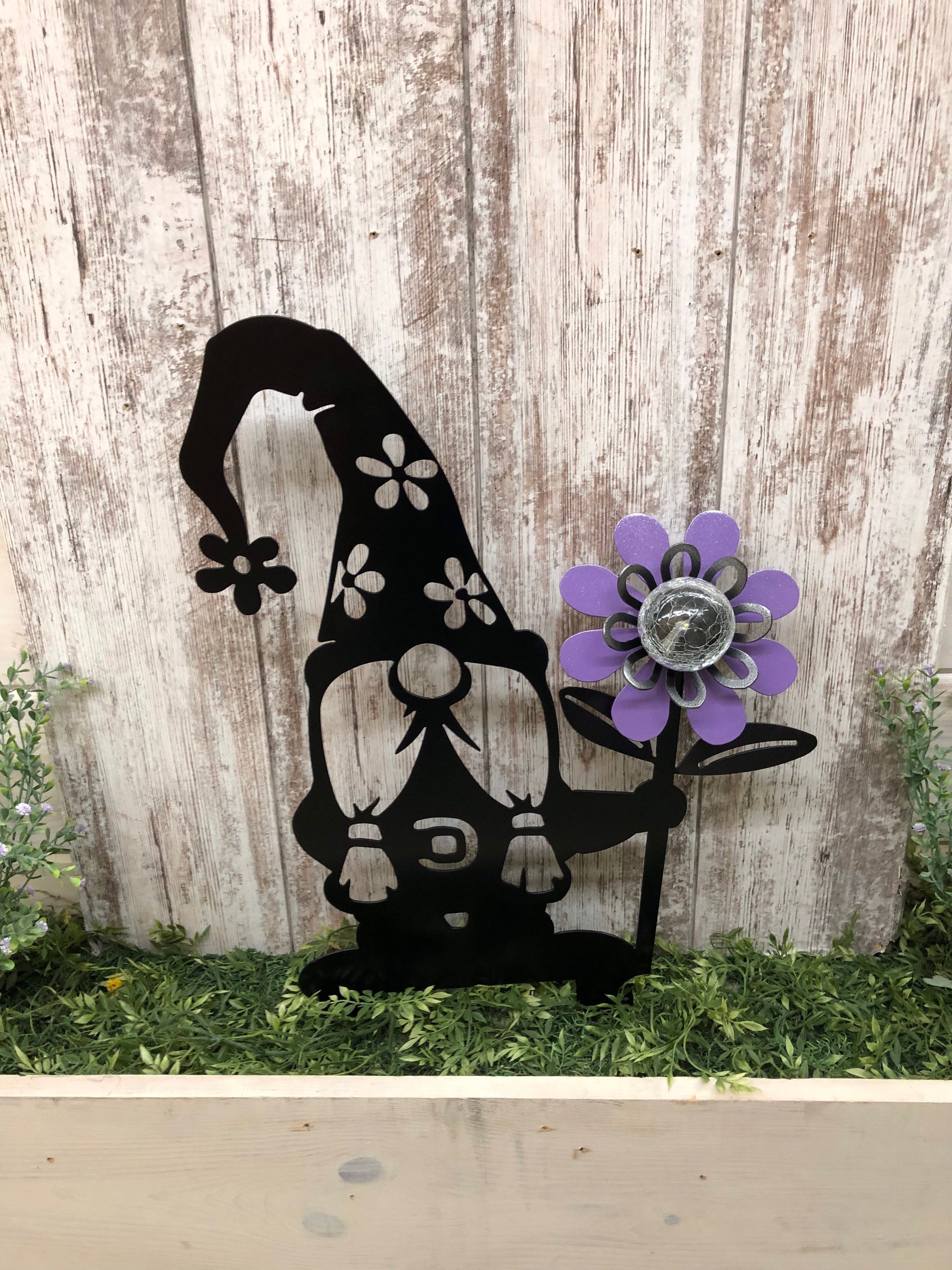 "Gnomo solare con fiori, 22\"H x 17\"W, luce solare,...