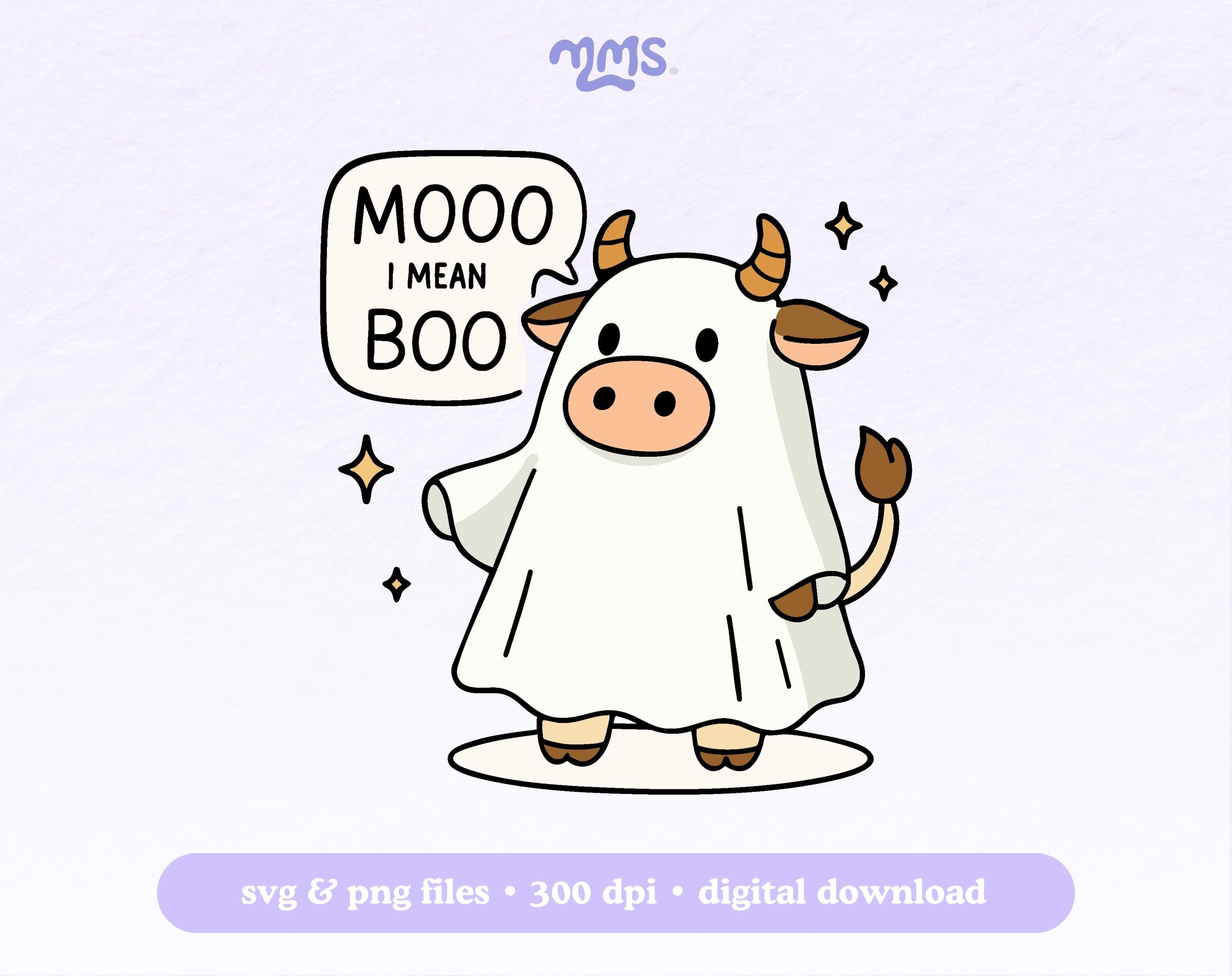Moo I Mean Boo Cow Ghost Svg Png Cut File For Cricut, Cute Hallowee...