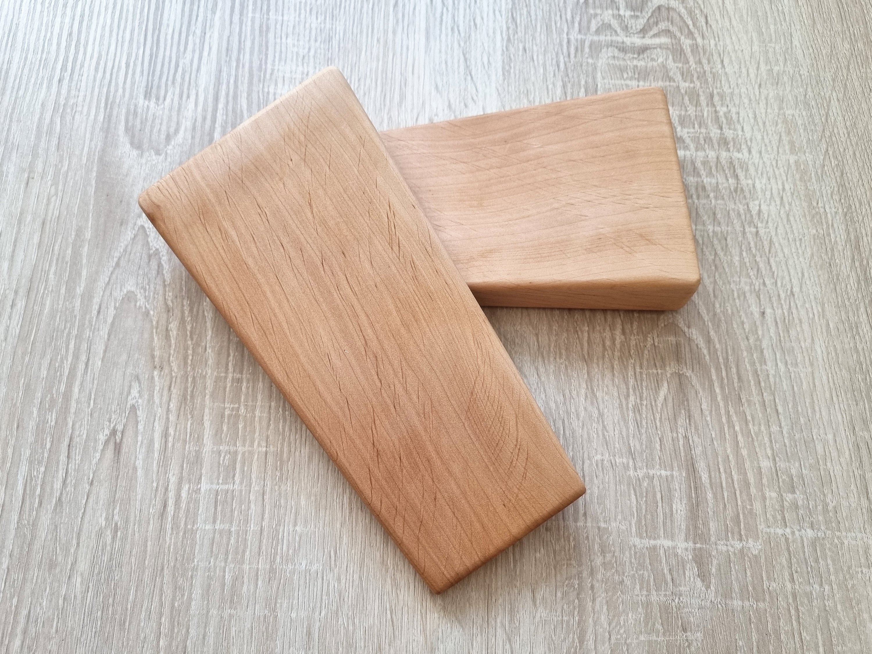 Coppia di blocchi da yoga in legno naturale con cuneo. Cuneo per at...