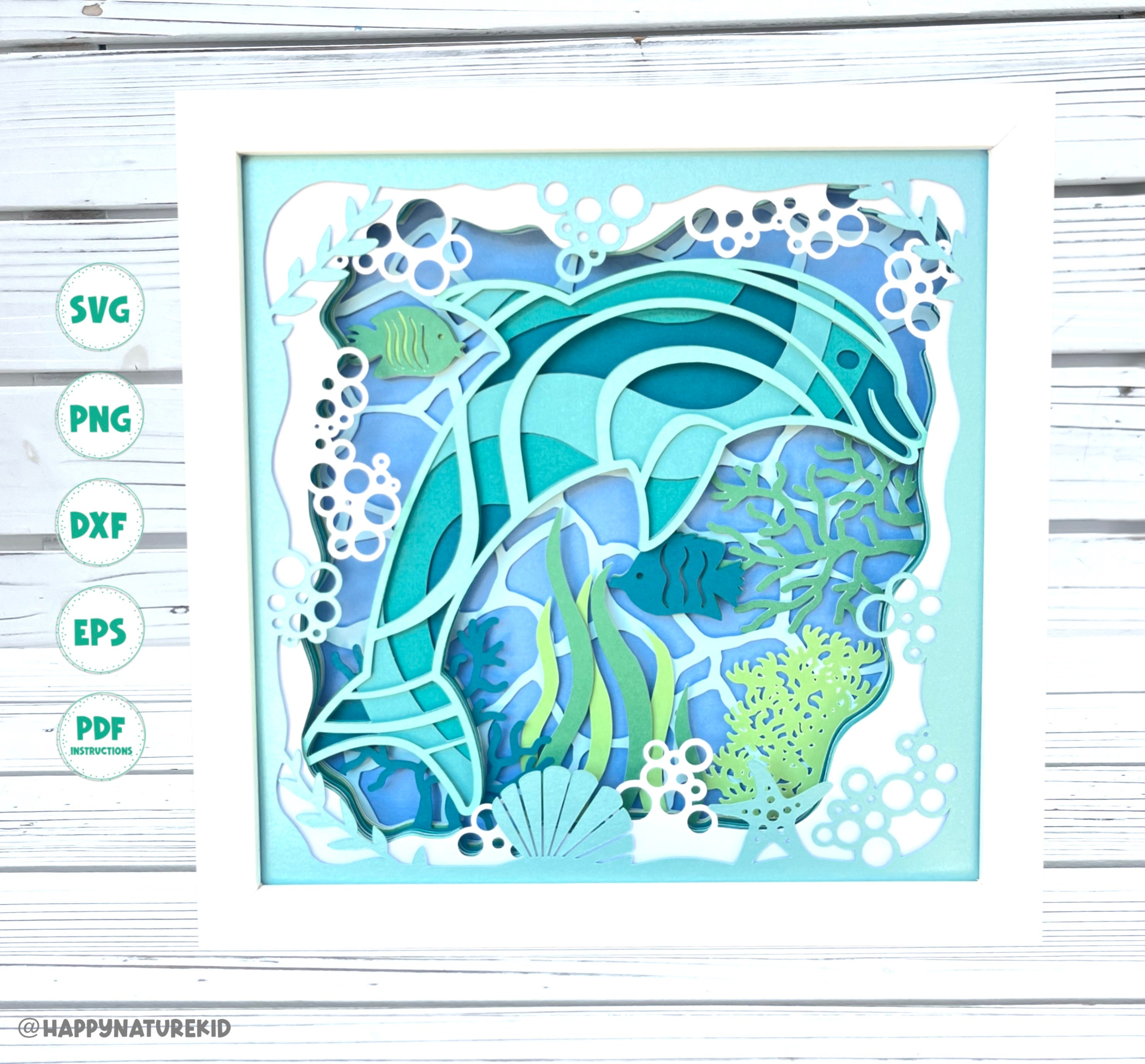 Questo è un formato SVG 3D Dolphin Shadow Box che sarà perfetto per il tuo prossimo pr...