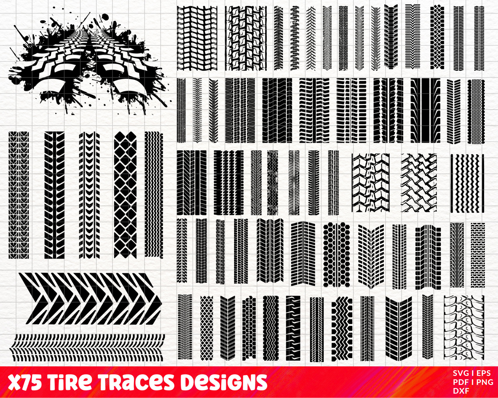 Pacchetto SVG di tracce di pneumatici di alta qualità, dxf d...
