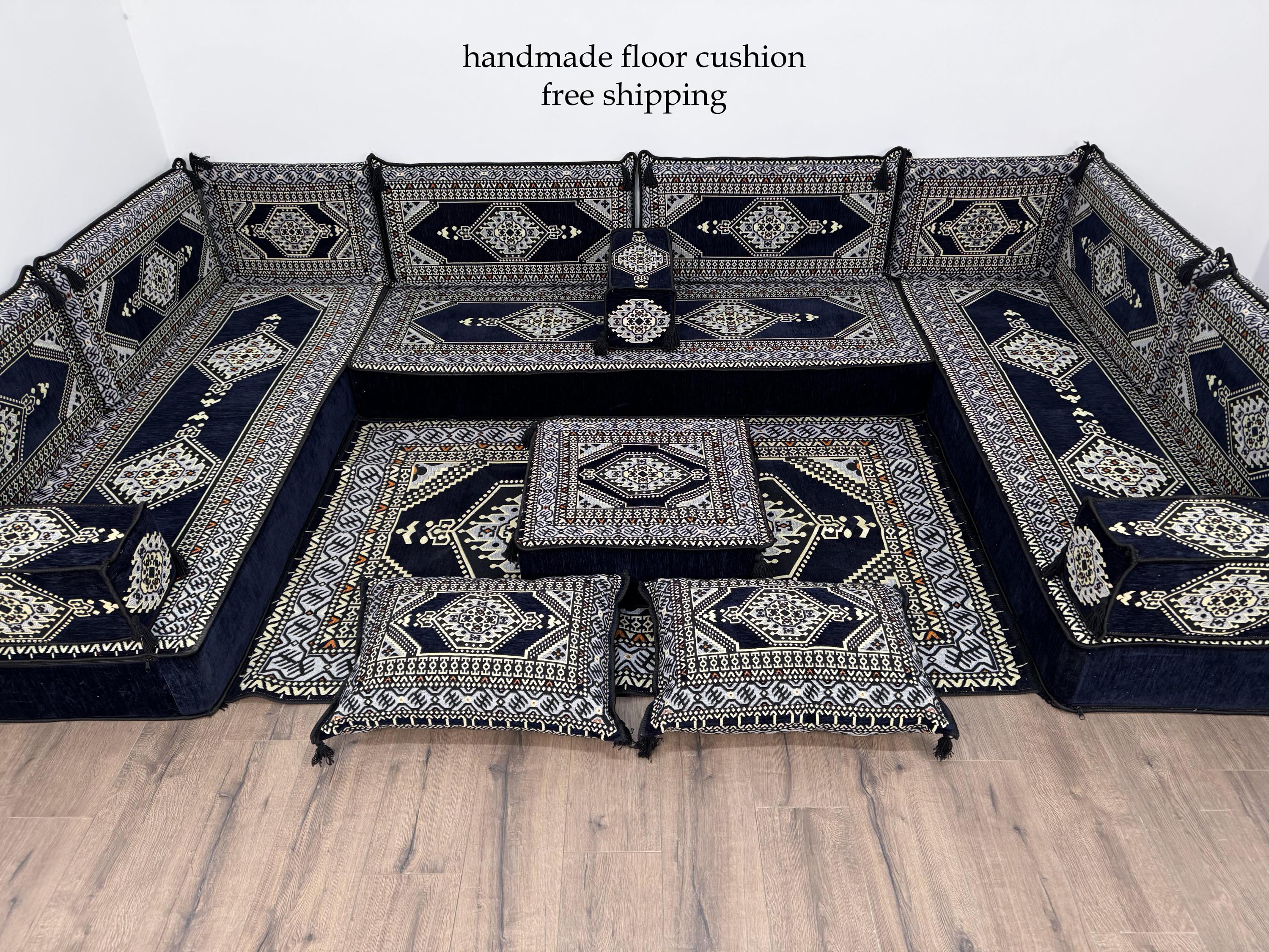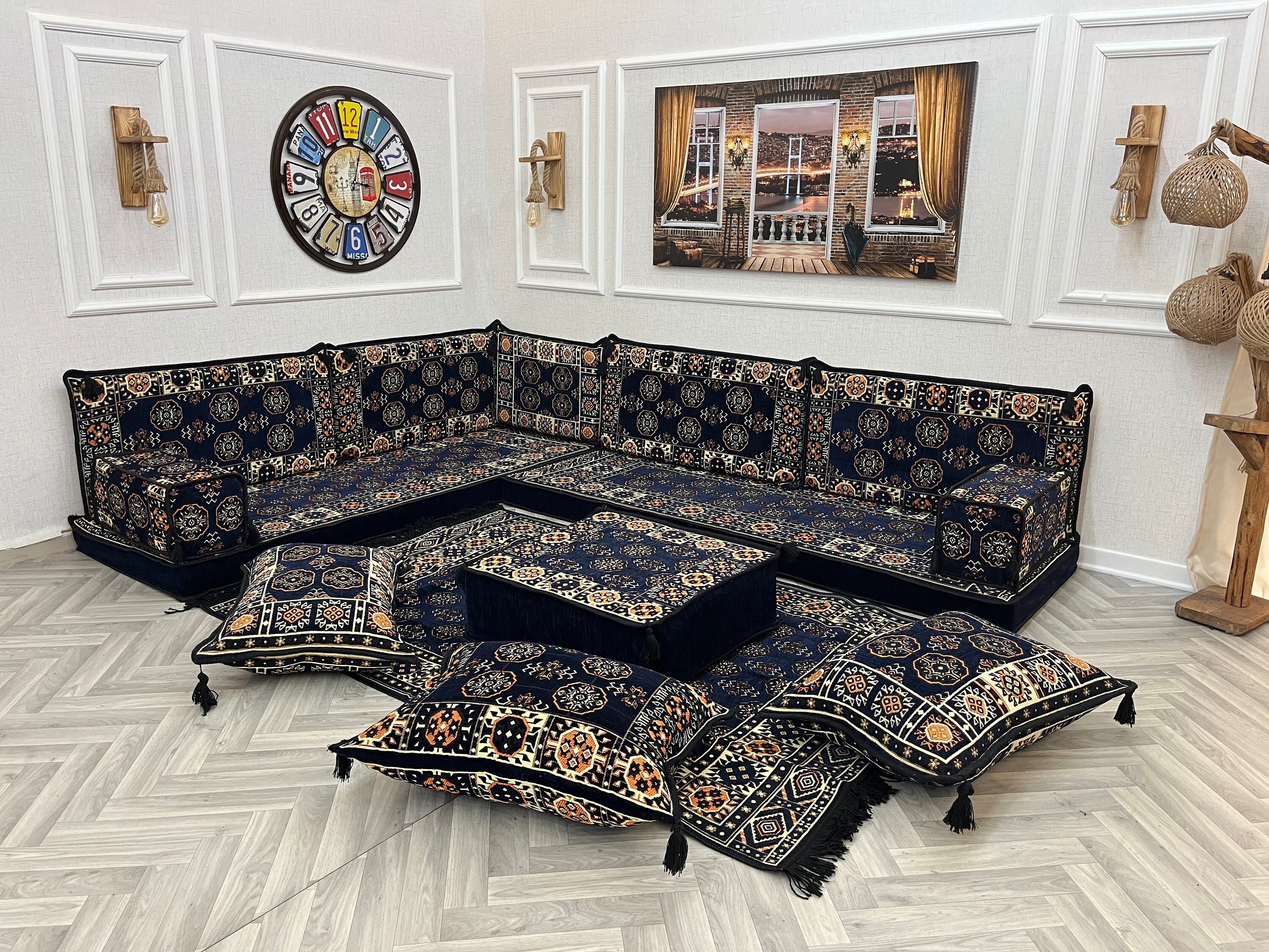 Divano arabo a forma di L con cuscino da pavimento, arredamento per soggiorno, divano ottomano, diva...