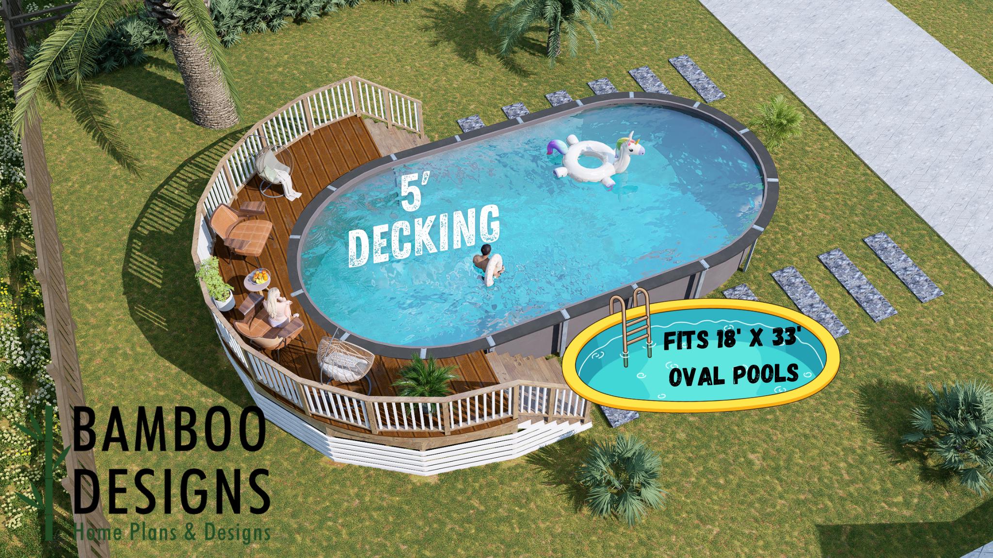 "Il progetto per la terrazza per piscina ovale Belleview 18x33 dona alla tua piscina un elegant...