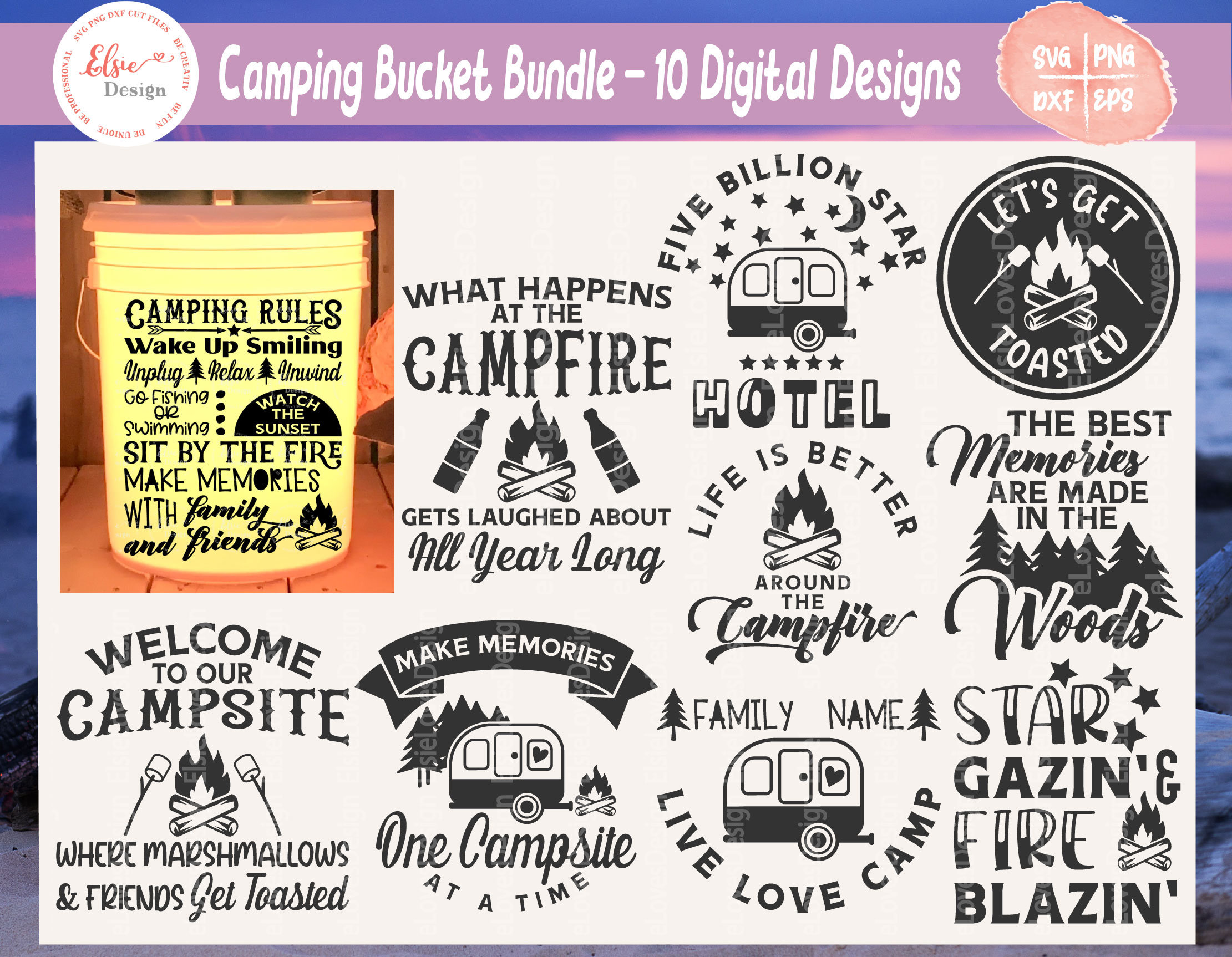I file di taglio digitale per secchi da campeggio (bozzetti non inclusi) possono essere utilizzati p...