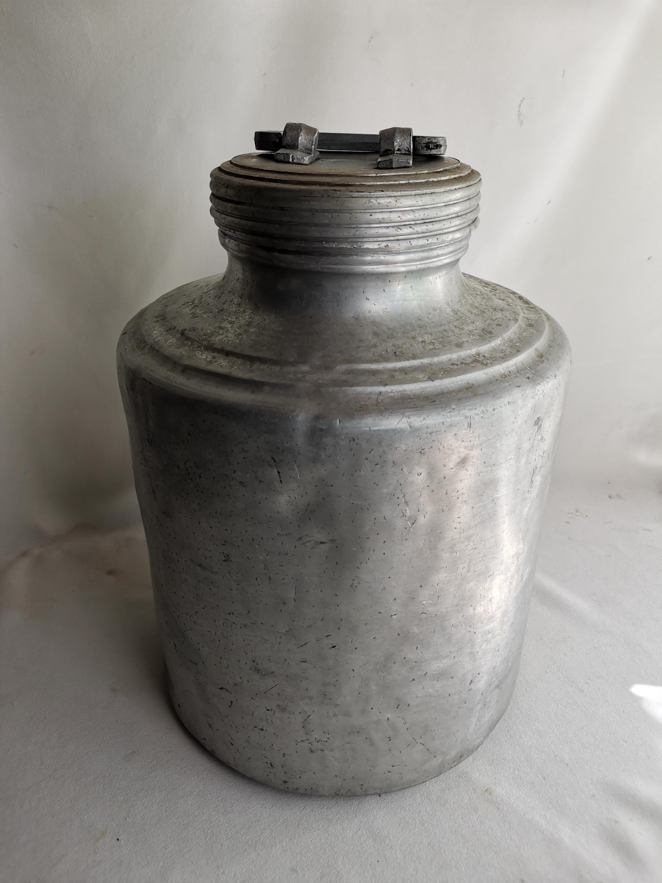Secchio per il latte in alluminio vintage con tappo a vite, anni '5...