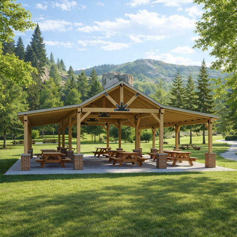 Progetto di padiglione con struttura in legno da 36'x57'. La splendida struttura in legno, abbinata ...