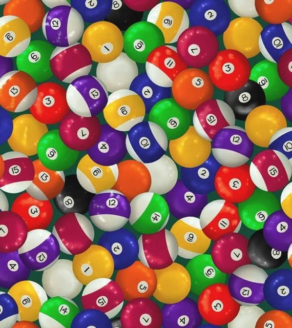 Tessuto di cotone BILLIARD BALLS, gioco del biliardo, biliardo, tav...