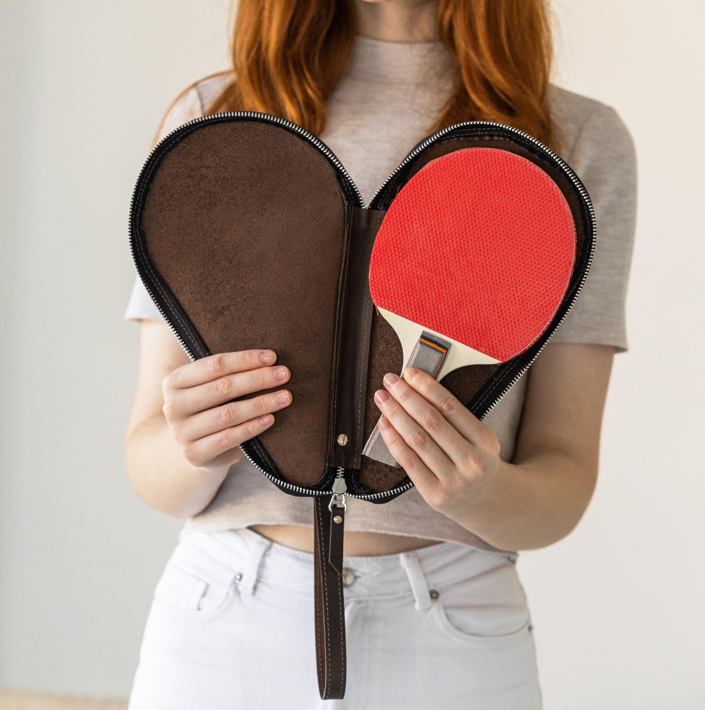 Custodia per ping pong in vera pelle, custodia per racchetta da pin...