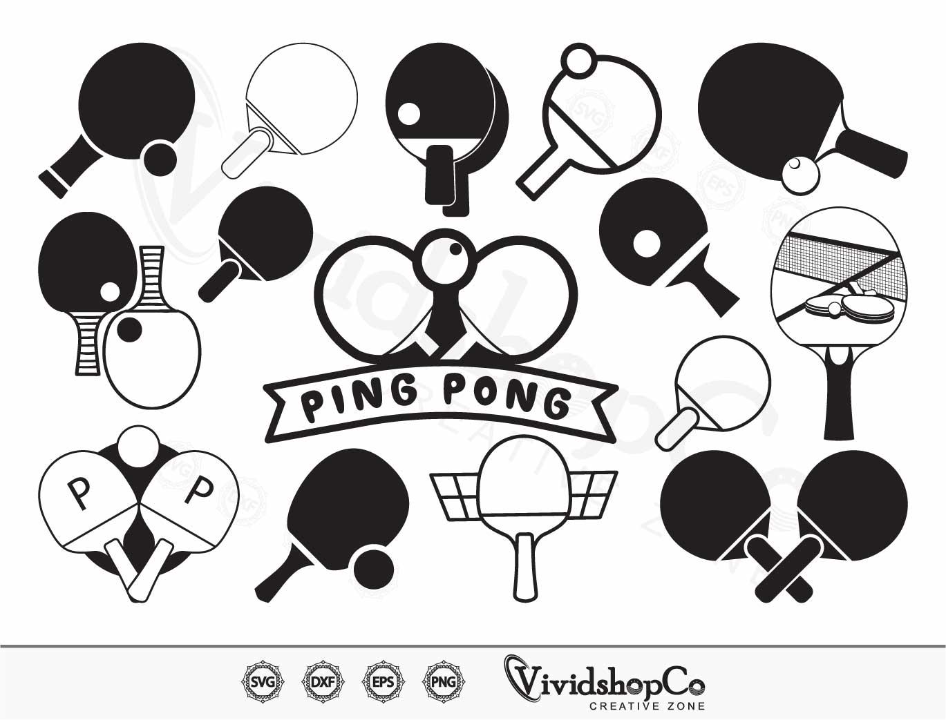 Pacchetto svg e png di Ping Pong, File digitali di Ping Pong, File svg di tennis da tavolo File png ...