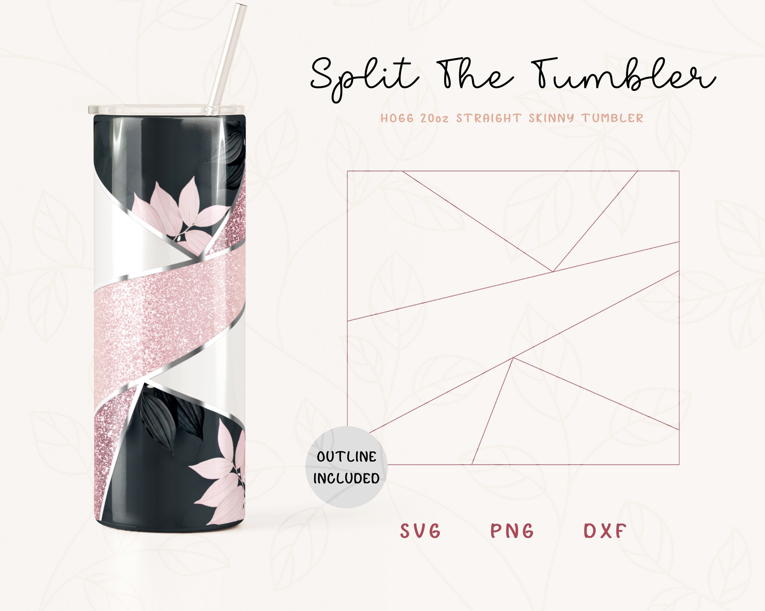 Modello per bicchiere diviso SVG, DXF per Hogg 20oz Straight Skinny...