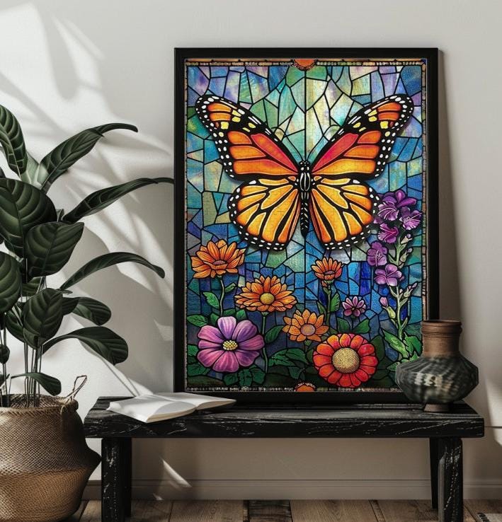 Puzzle a forma di farfalla in vetro colorato, puzzle floreale da pa...