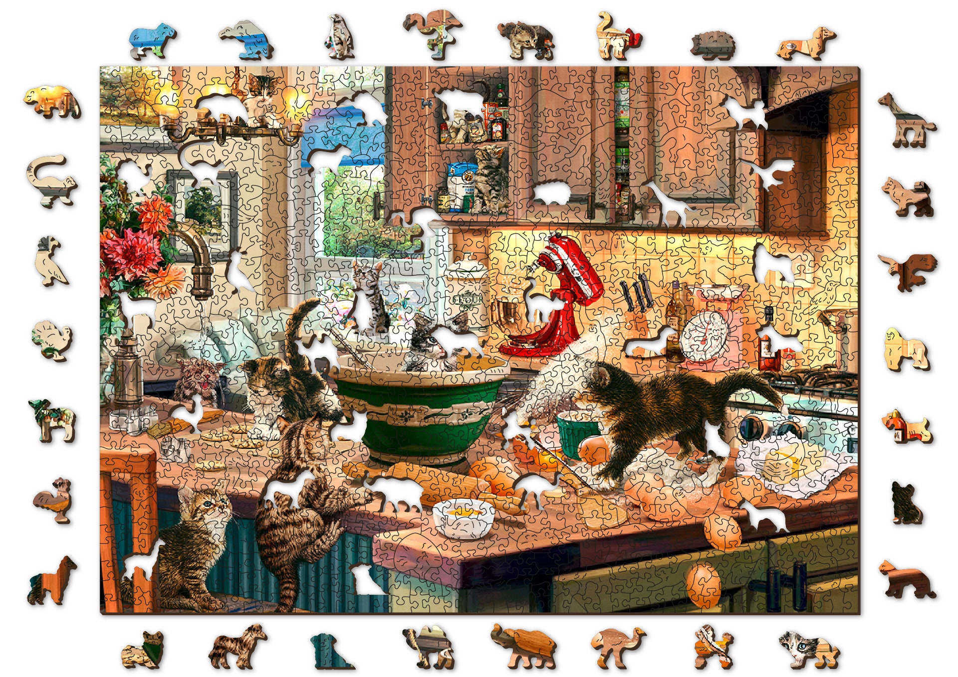 "Puzzle in legno 1000 + 10 pezzi \"Kitten Kitchen Capers\...