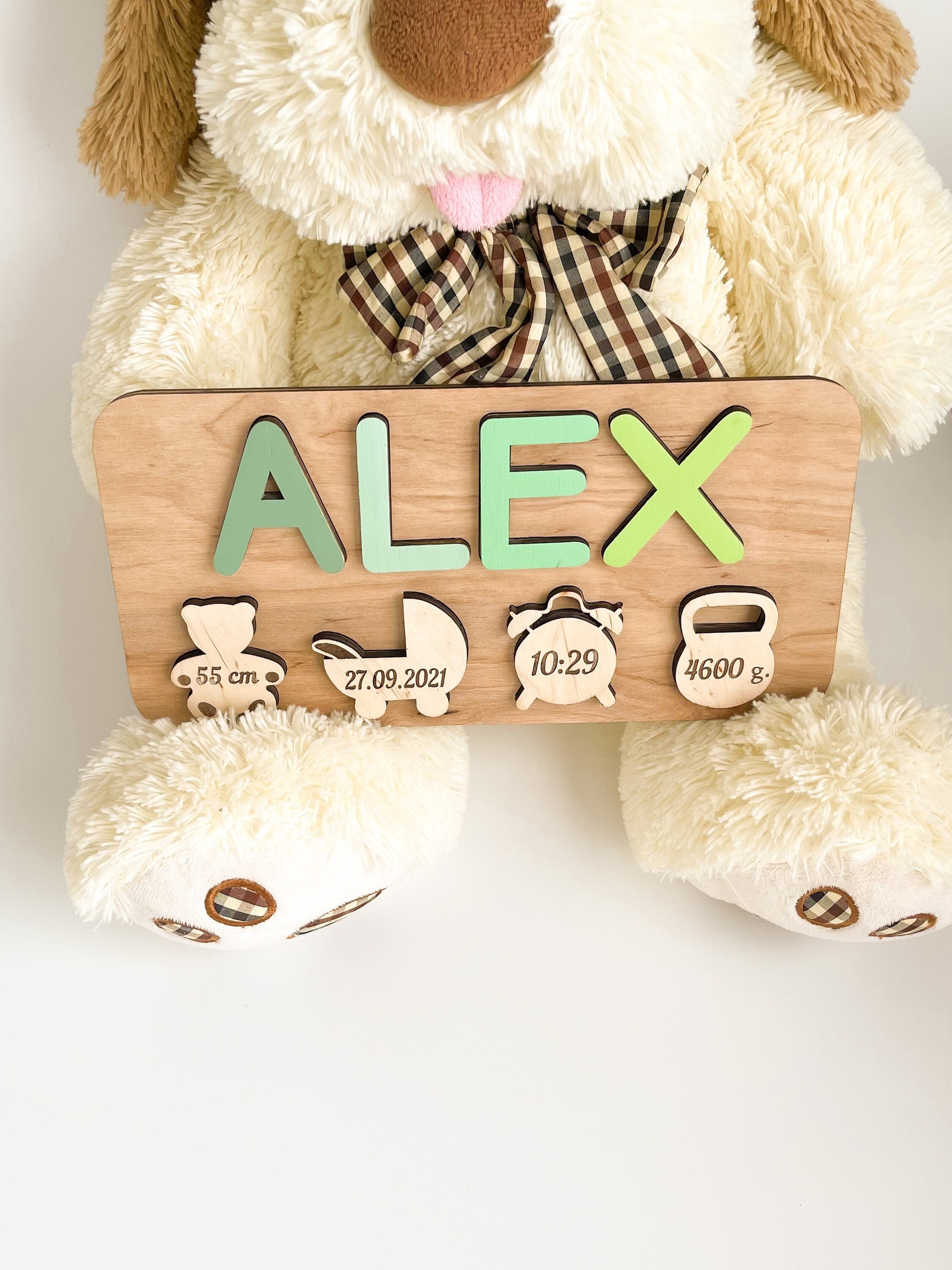 Puzzle con nome personalizzato in legno con statistiche di nascita ...