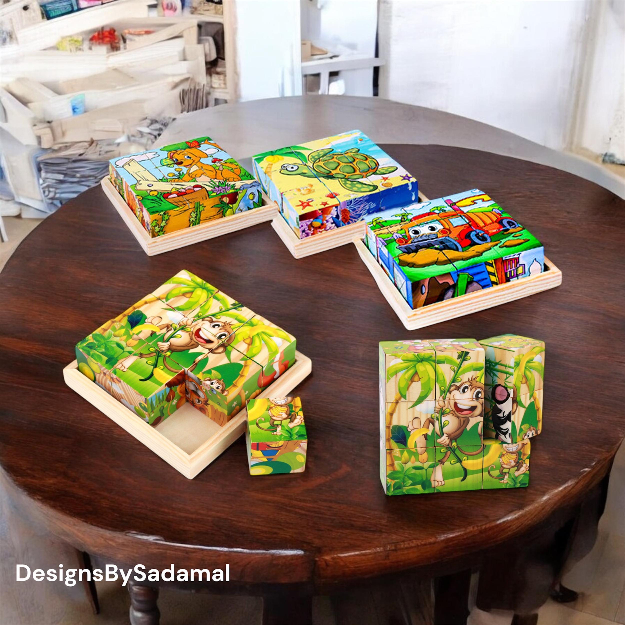 Puzzle di cubi 3D in legno per bambini - Puzzle di cartoni animati ...