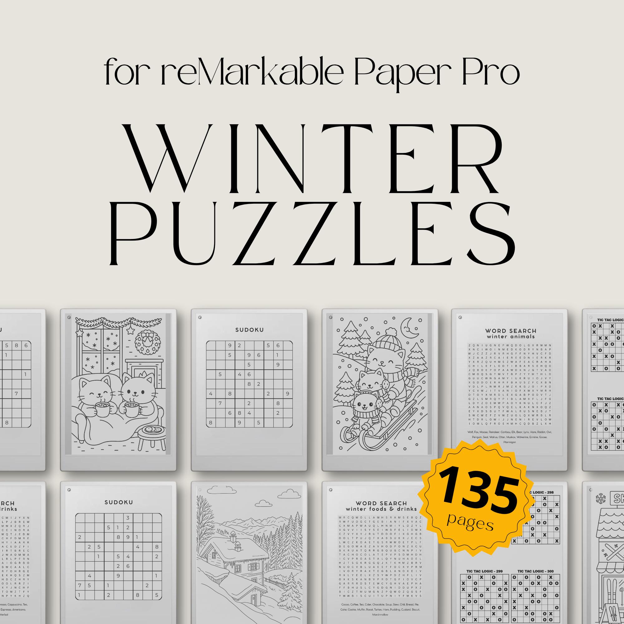 Puzzle invernale e libro da colorare per reMarkable Paper Pro: 135 pagine di divertimento invernale,...