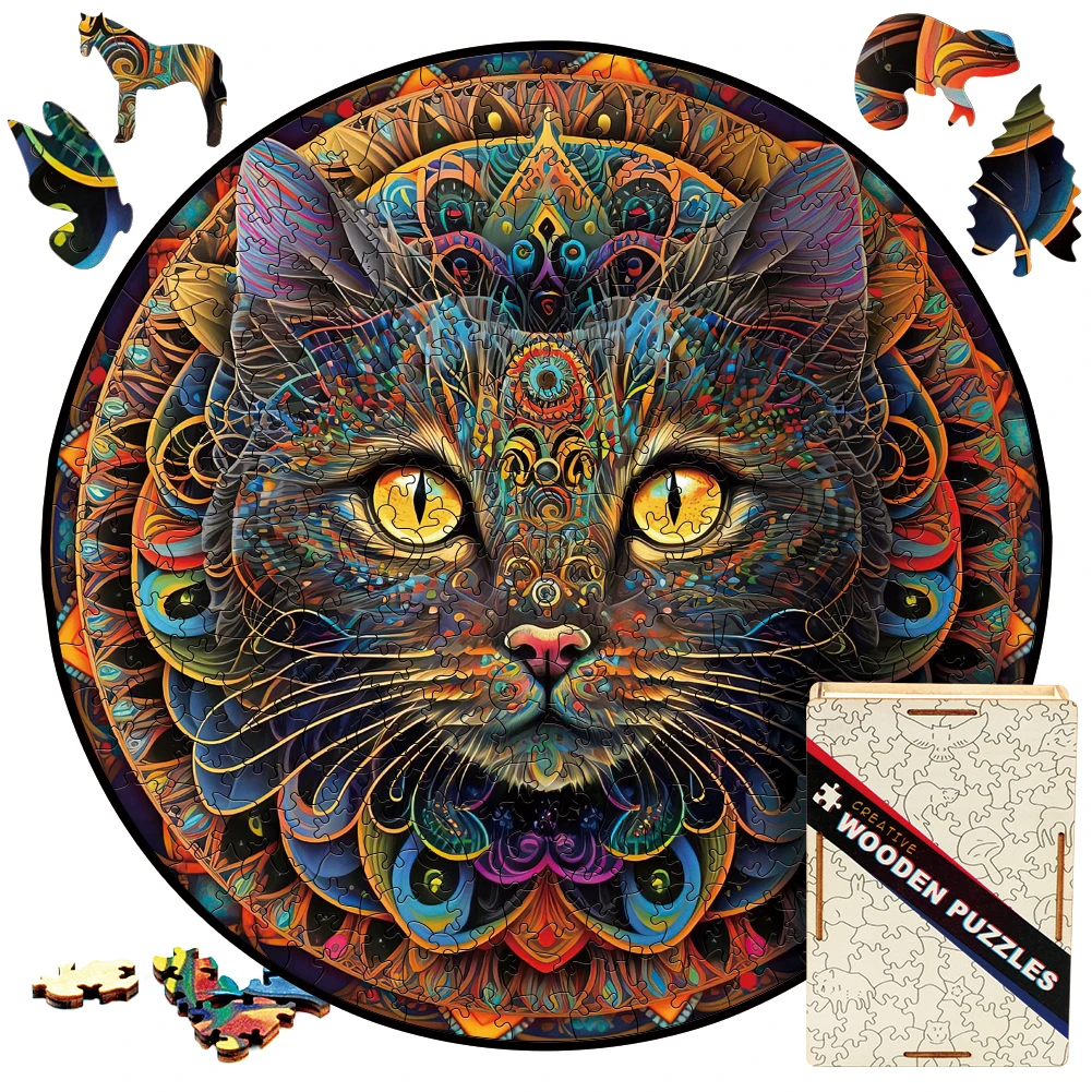 Mandala Cat Puzzle in legno Giochi da tavolo Puzzle in legno di ani...