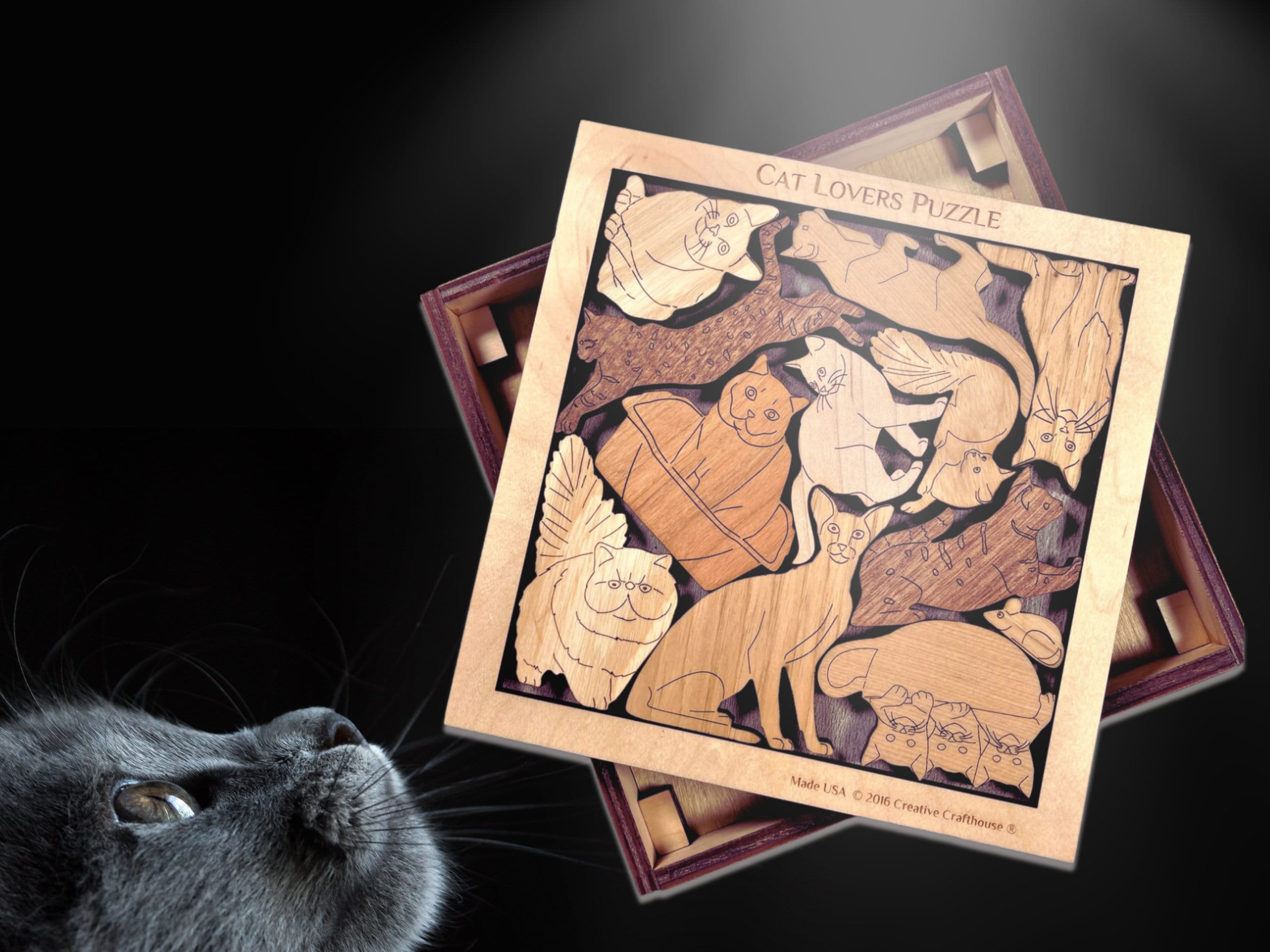 12 Puzzle in legno con gatti e topi - Rompicapo in legno fatto a ma...