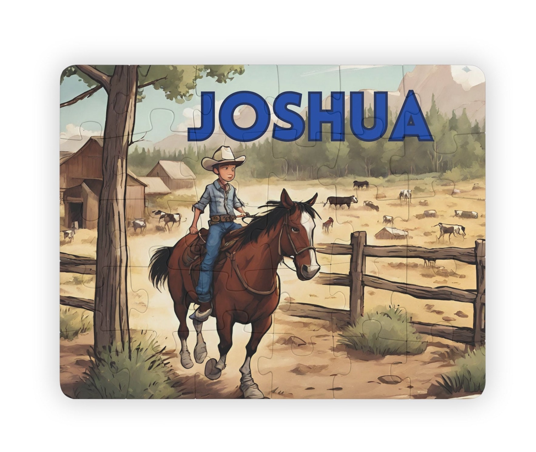 Puzzle personalizzato per bambini 30 pezzi / Puzzle cowboy con mucc...