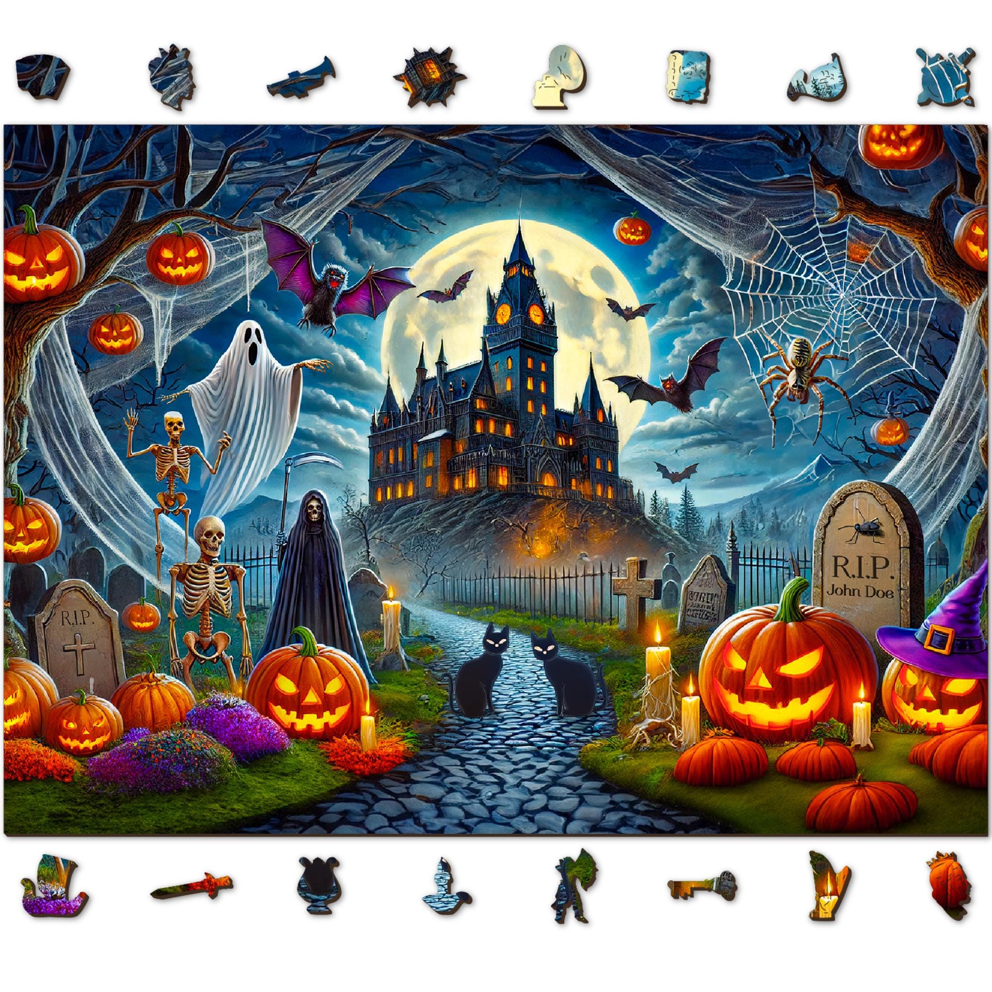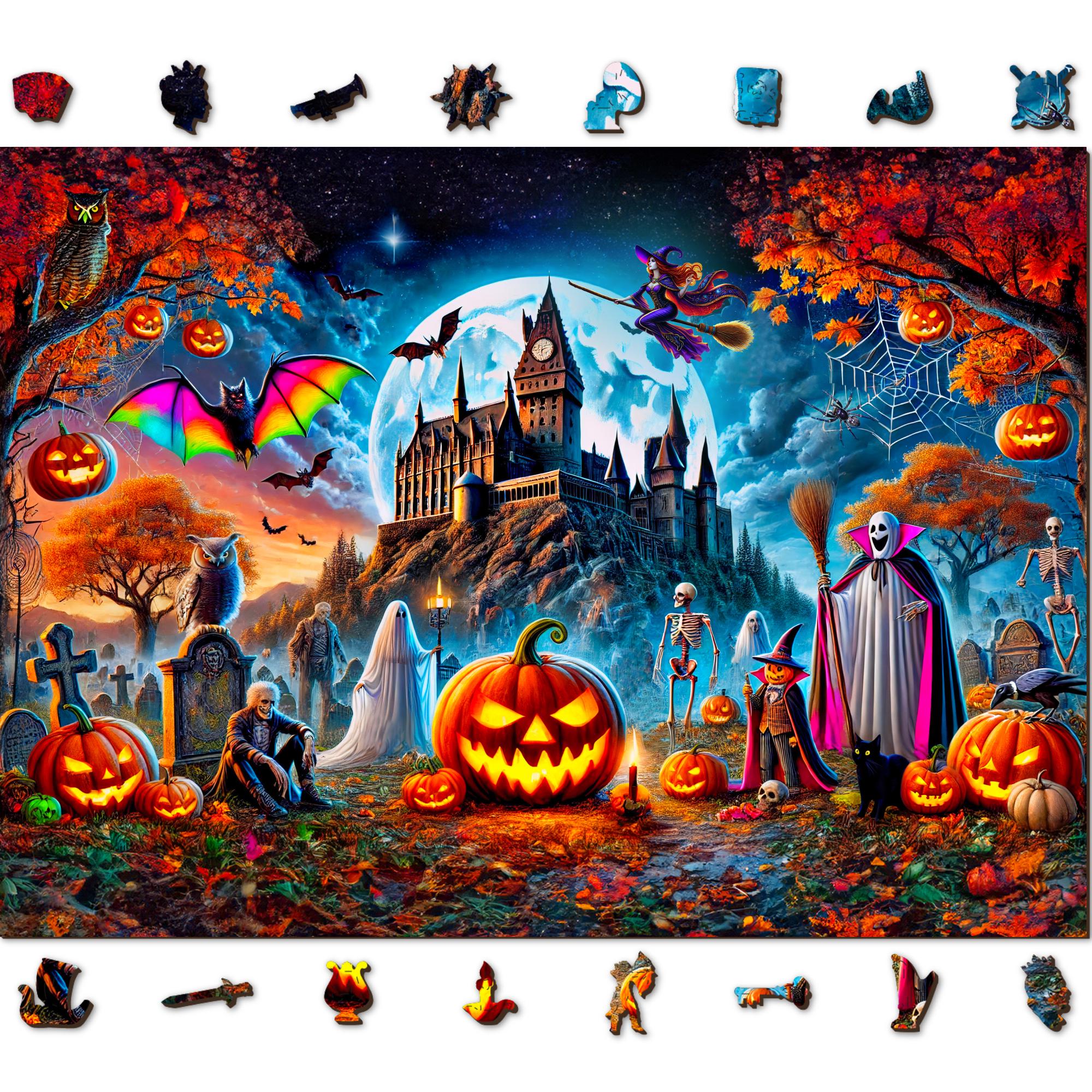 Castello di Halloween - Puzzle in legno - Puzzle in legno da 1000 p...